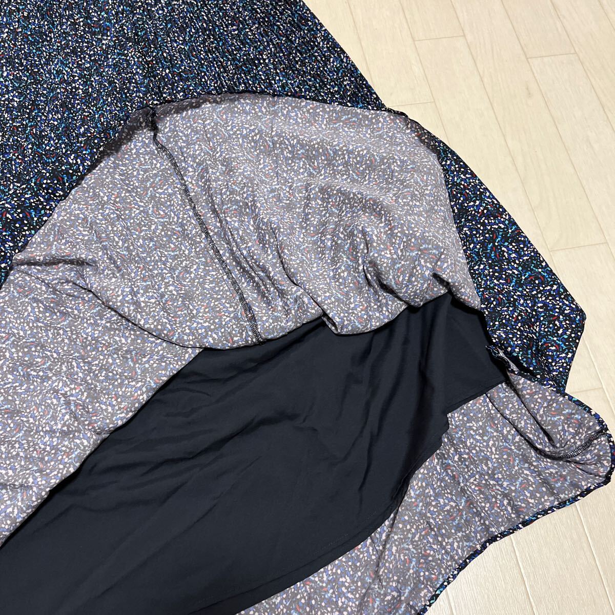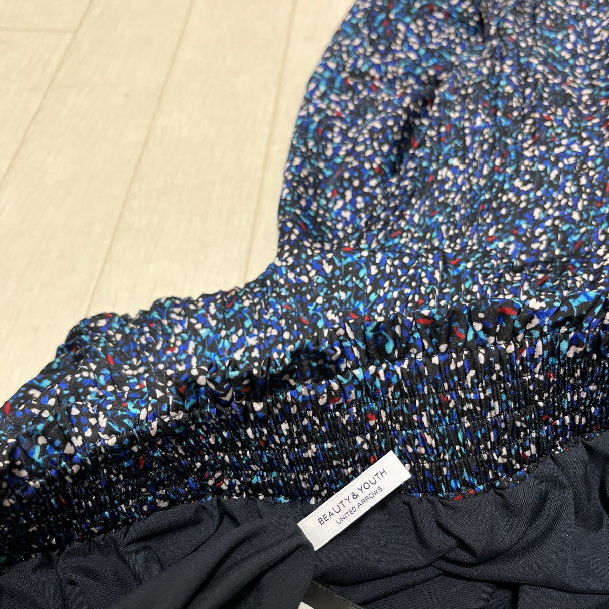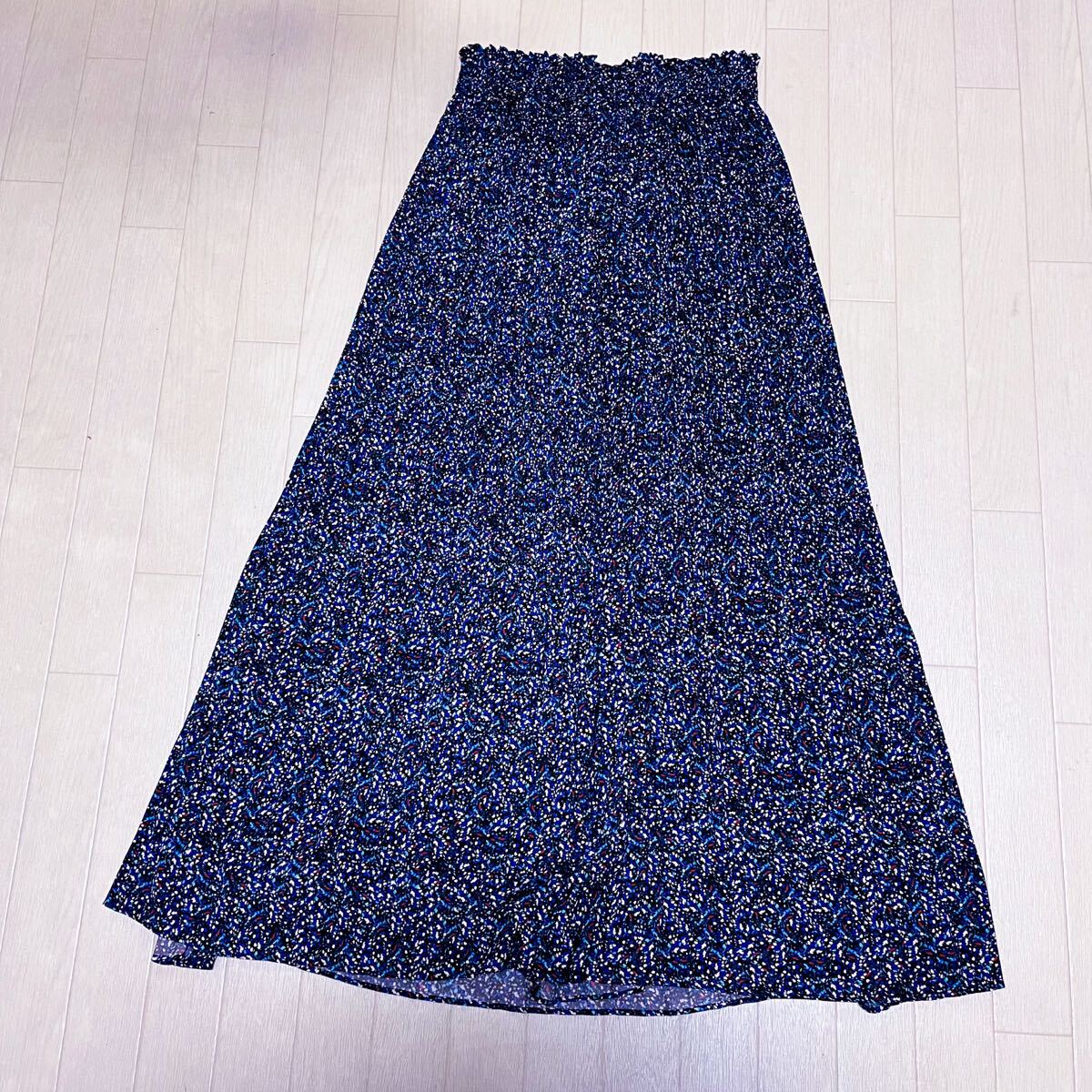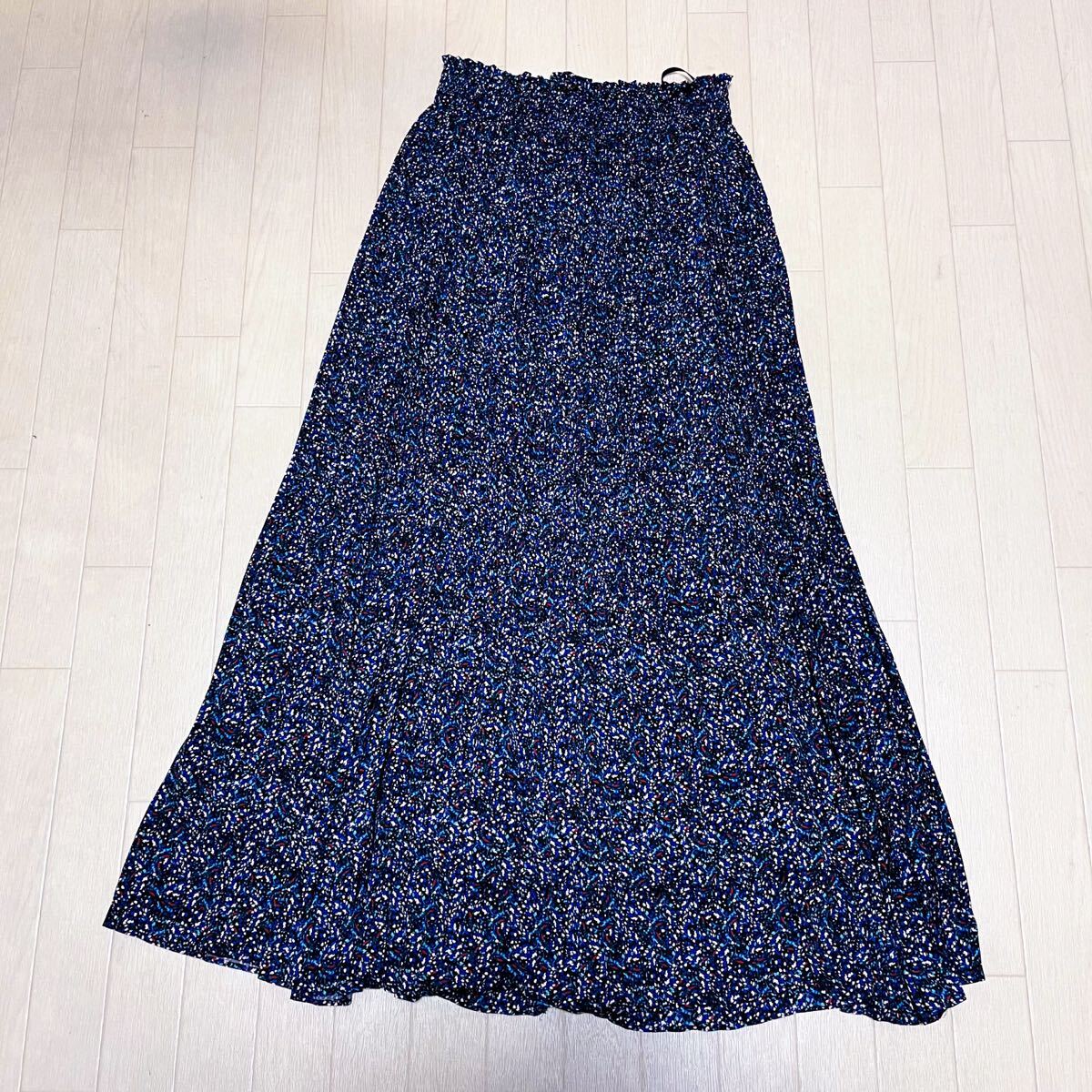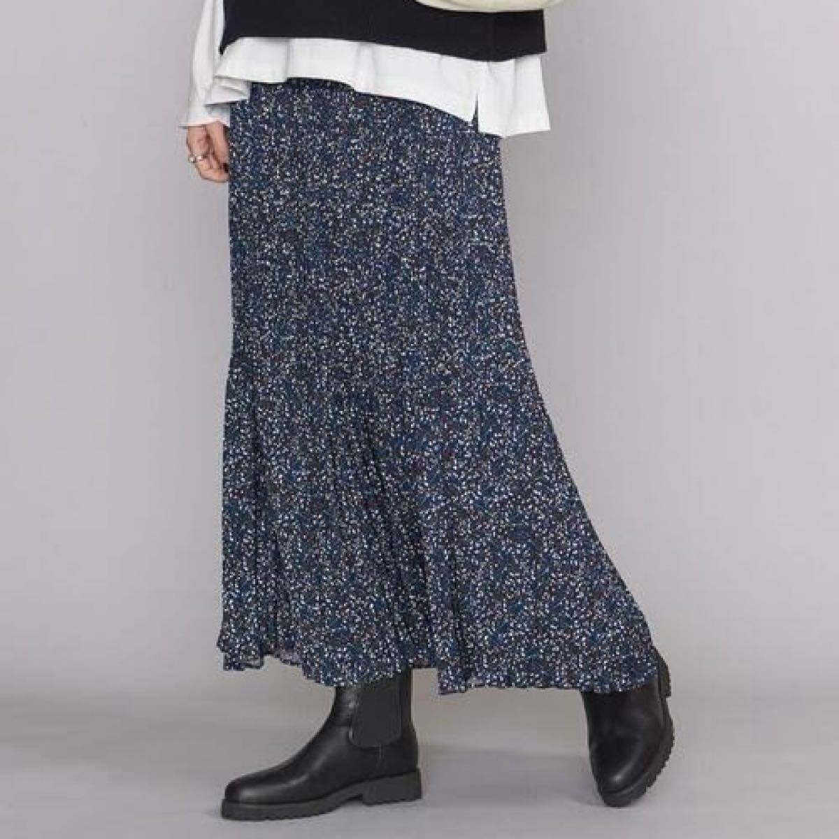 和732★ BEAUTY&YOUTH UNITED ARROWS ビューティ&ユース フラワープリント プリーツスカート ロングスカート S ネイビー レディース