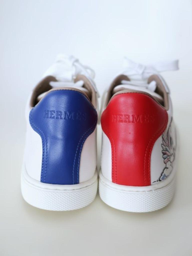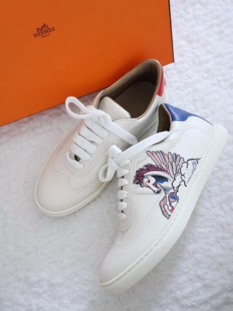 【送料込】HERMES エルメス Quicker クィッカー ペガサスポップスニーカー 22.5cm オフホワイト×レッド×ブルー ハイブラ 6453123