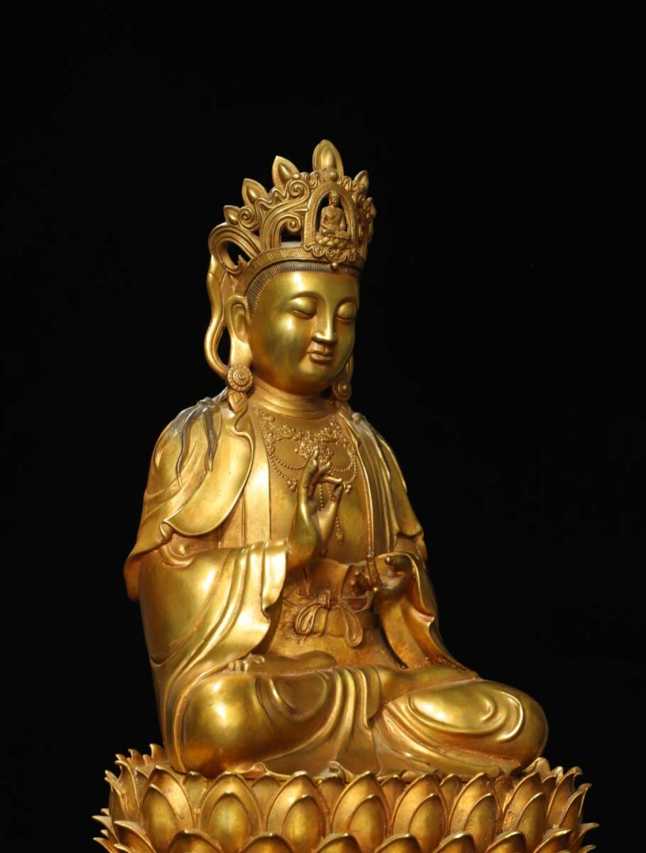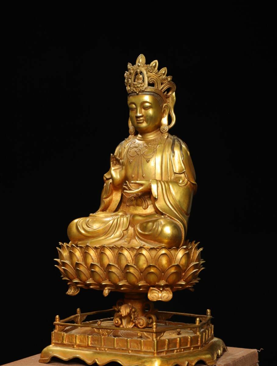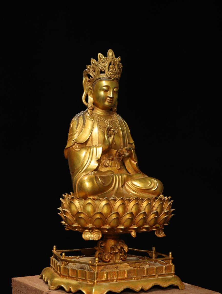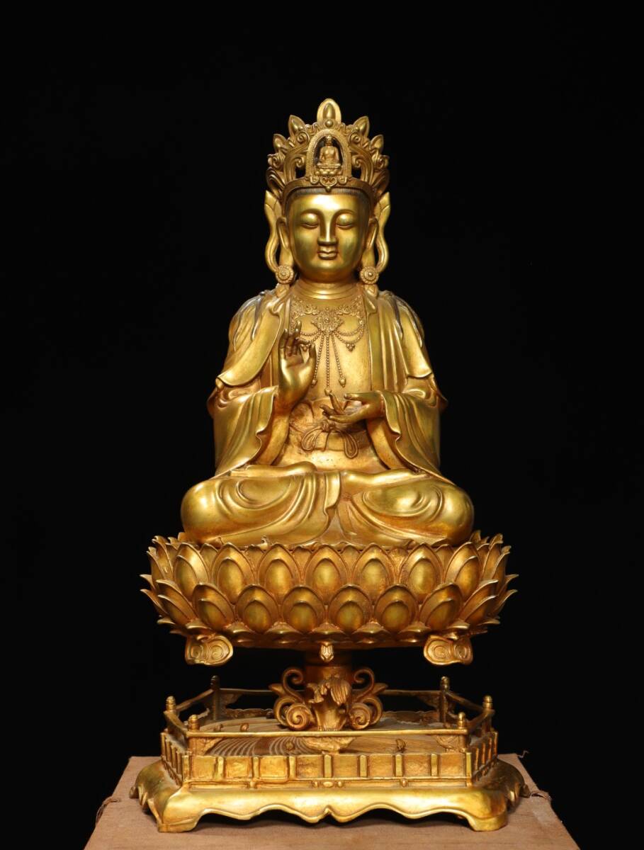 *珍品旧蔵* 大明 永樂年製 大判仏像-高さ50 cm銅塗金【大勢至菩薩】仏像 分体蓮華座 銅製 極細工 中国古玩 仏教古美術 供養品 H45