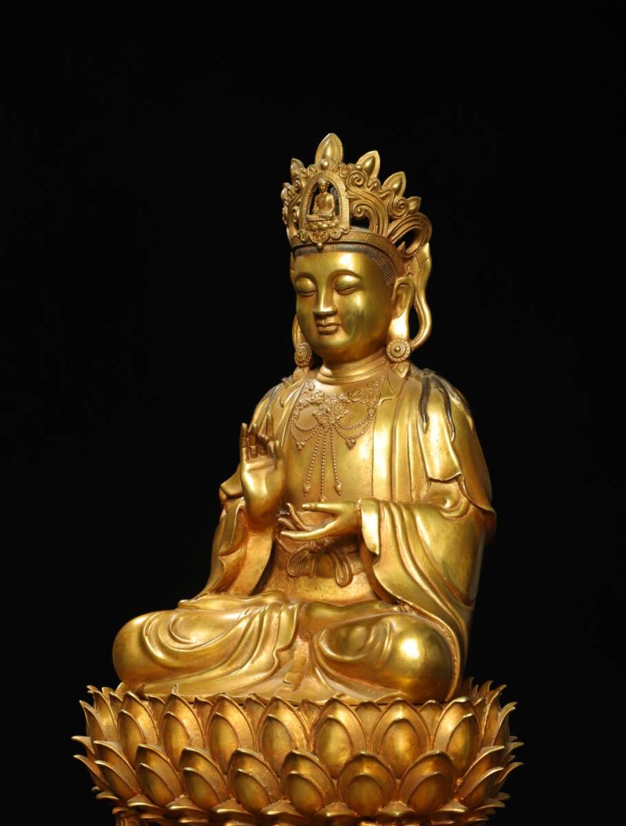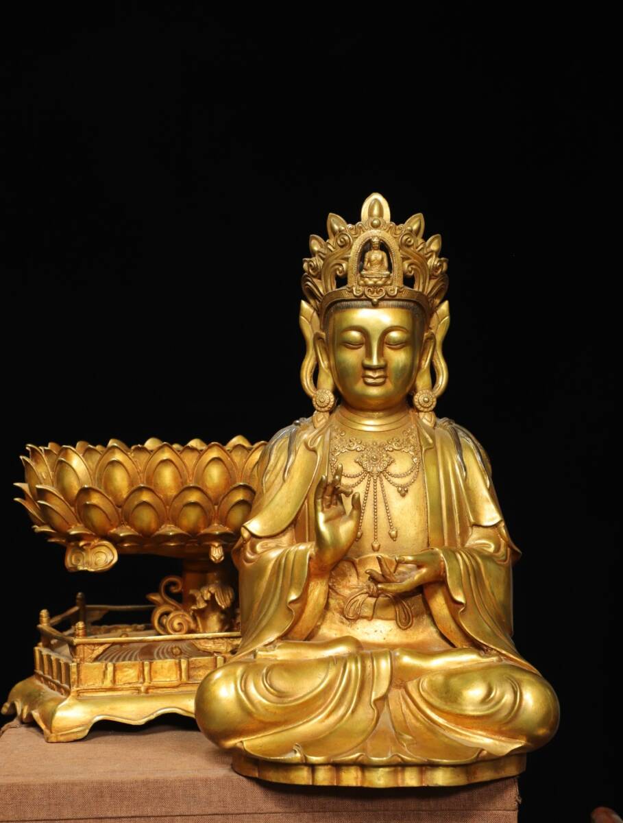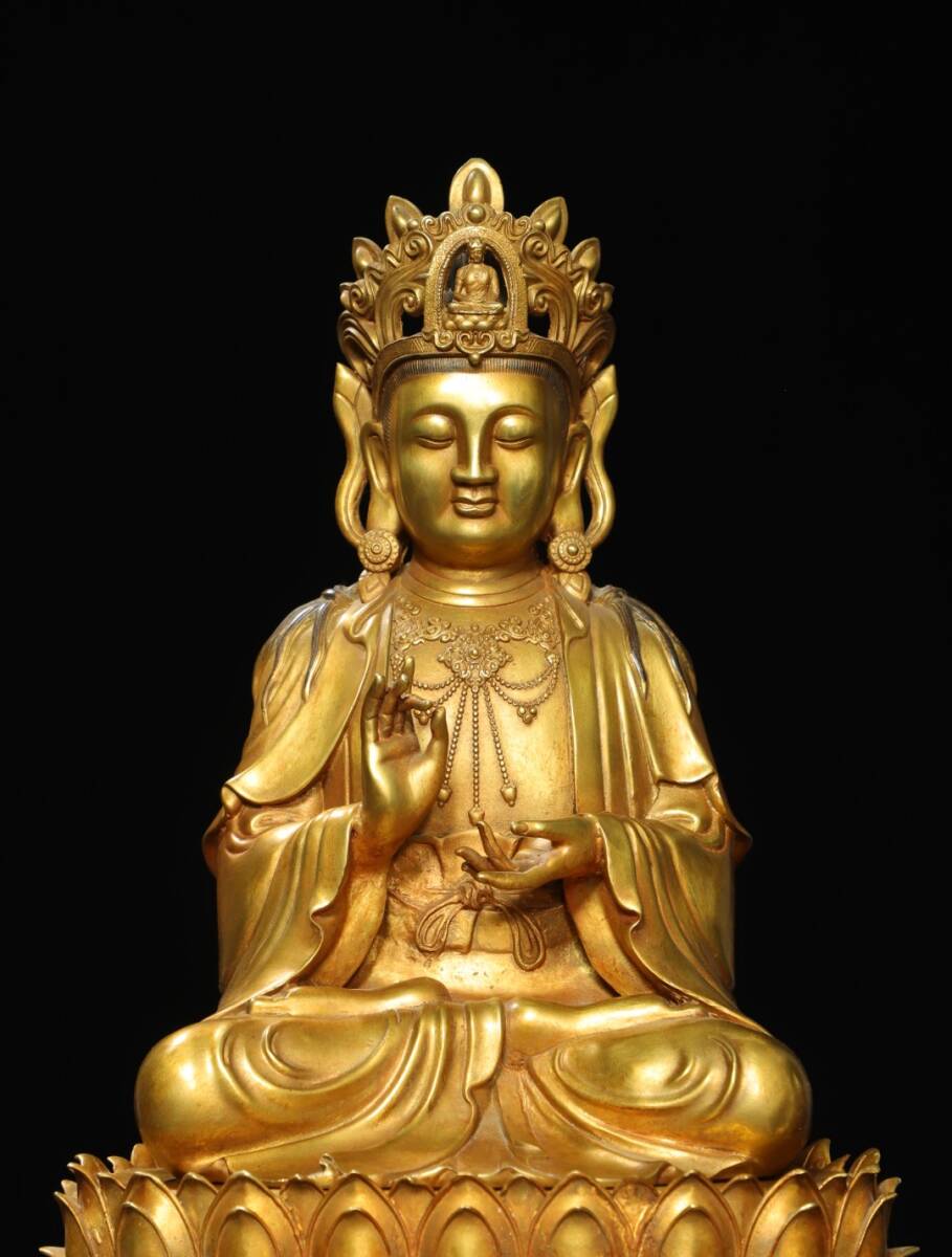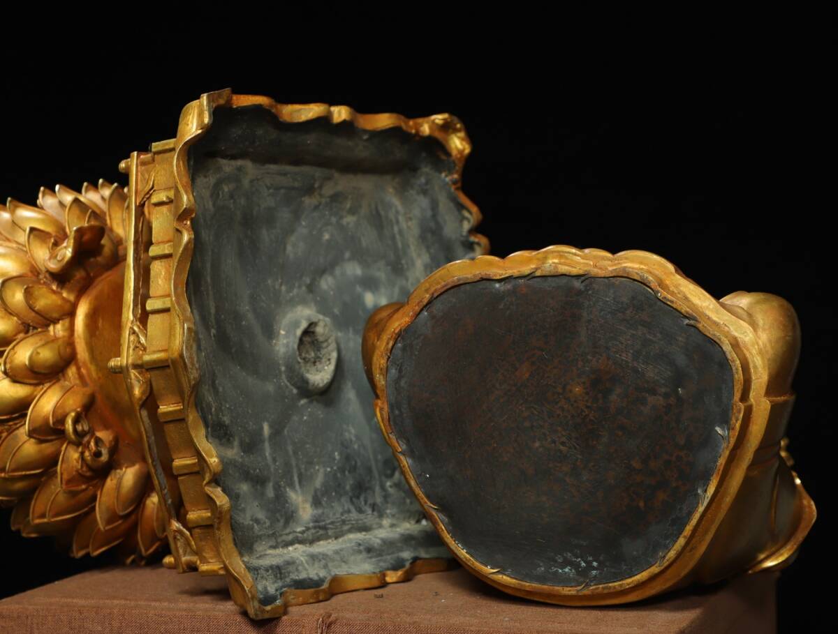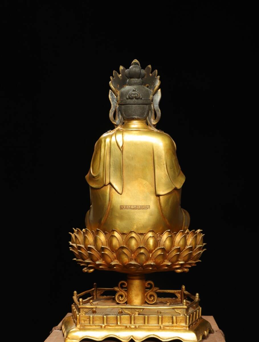 *珍品旧蔵* 大明 永樂年製 大判仏像-高さ50 cm銅塗金【大勢至菩薩】仏像 分体蓮華座 銅製 極細工 中国古玩 仏教古美術 供養品 H45