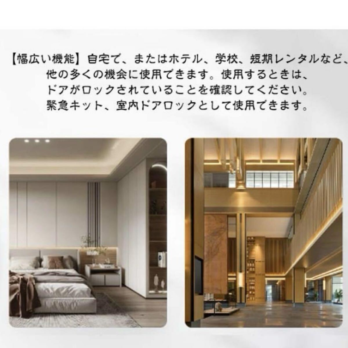 使用するときは、ドアがロックされていることを確認してください。緊急キット、室内ドアロックとして使用できます。
