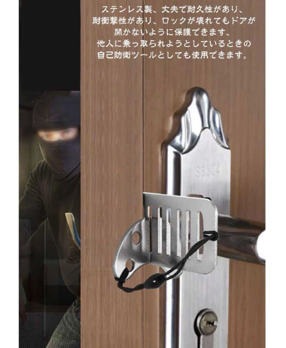 ステンレス製、丈夫で耐久性があり、耐衝撃性があり、ロックが壊れてもドアが開かないように保護できます、他人に乗っ取られようとしているときの自己防衛ツールとしても使用できます。