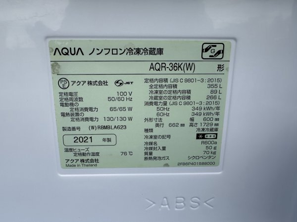 AQUA アクア 2021年 AQR-36K(W) 355L 4ドア 冷凍冷蔵庫です。
