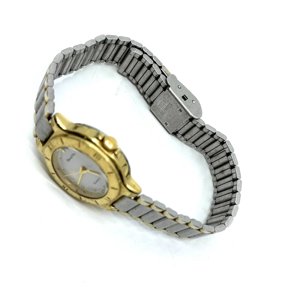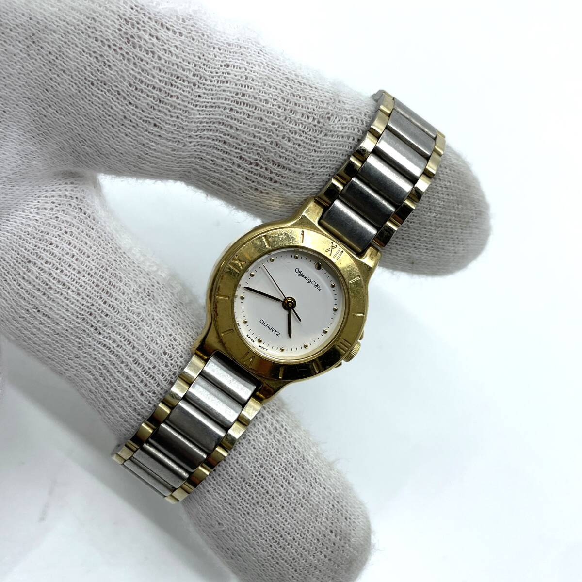クォーツ 腕時計 白文字盤 3針 ローマン ラウンド コンビ シルバー×ゴールド レディース 金属ベルト 部品取り