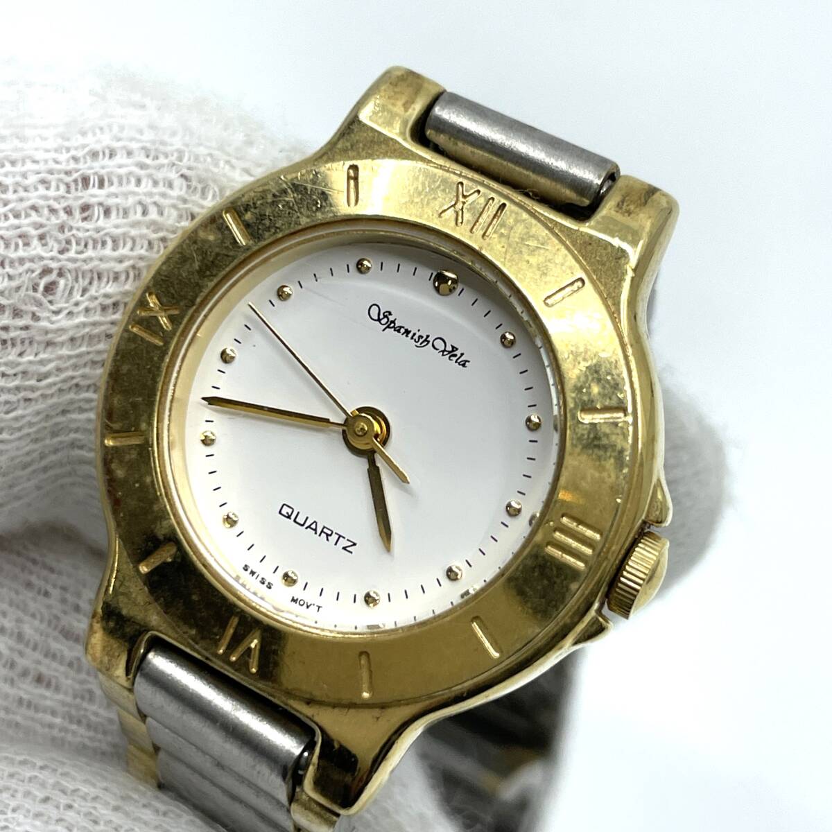 【電池切れ】Spanish Vela クォーツ 腕時計 白文字盤 3針 ローマン ラウンド コンビ シルバー×ゴールド レディース 金属ベルト S01L