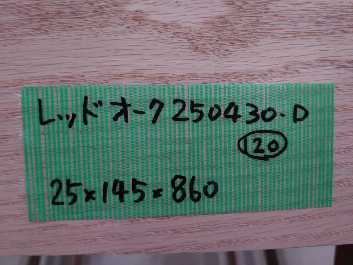 レッドオーク No.250430-D 無垢 乾燥材 板(長さ860㎜x幅145㎜x厚み25㎜)1枚 木材 DIY 棚板 小物作りに