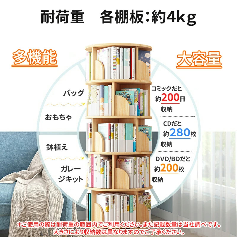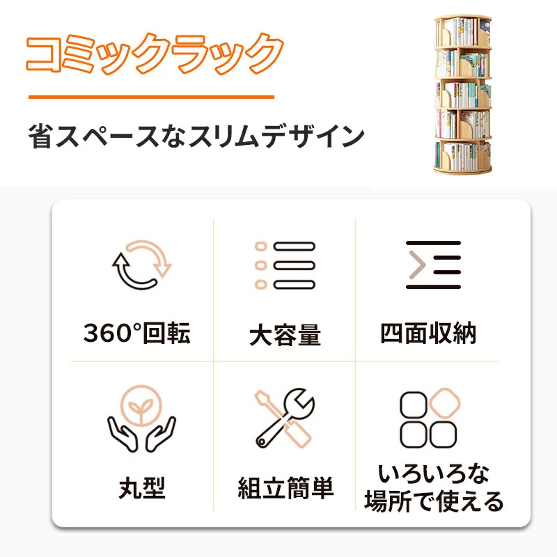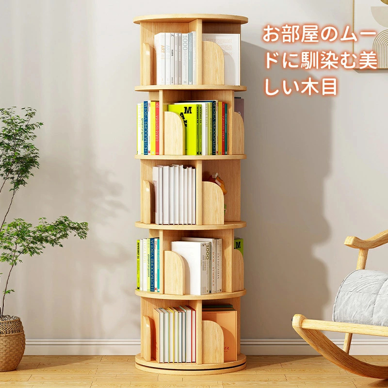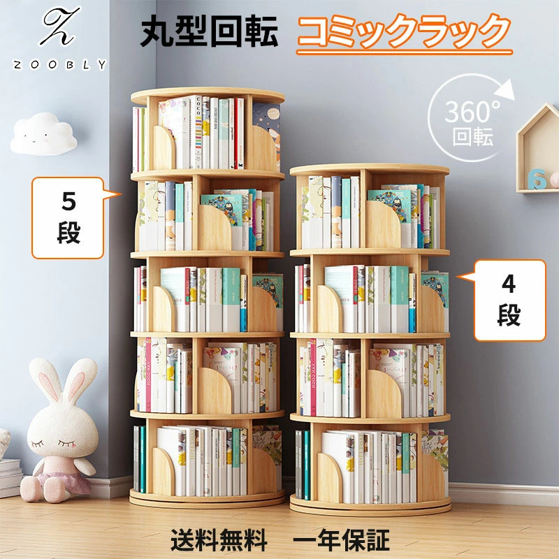 コミックラック 4段 5段 大容量 おしゃれ コンパクト 無垢材 本棚 おしゃれ 回転式本棚 cdラック 本棚 回転 絵本棚 本棚 漫画