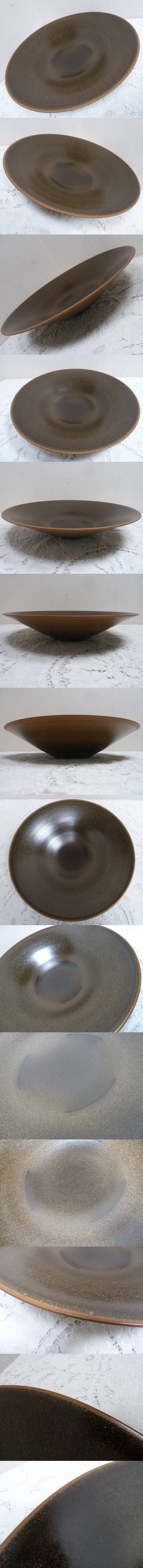 (☆BM)陶器製 特大 大皿 市野良行 作(1120-④)直径52㎝/5.6kg 水盤 華道具 大鉢 盆栽鉢 大きい皿 器 日本 飾り皿 置物 オブジェ