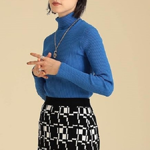 好評のリブタートルニット。シンプルながらも使い勝手の良いアイテムで、幅広いコーディネートで使える1枚です。スタイリングに合わせやすいベーシックなデザインで、インナーとしてはもちろん、1枚で着ても◎。