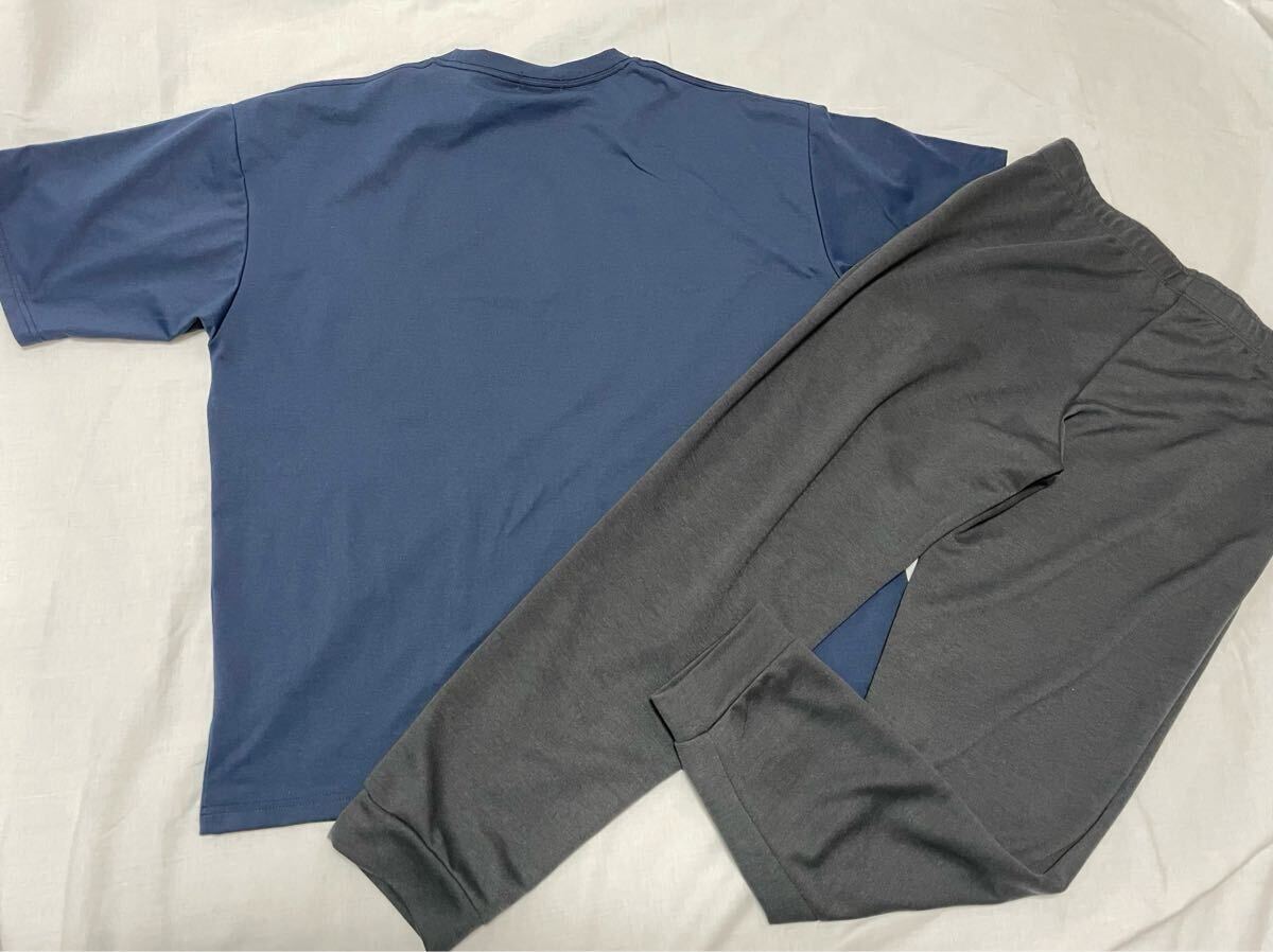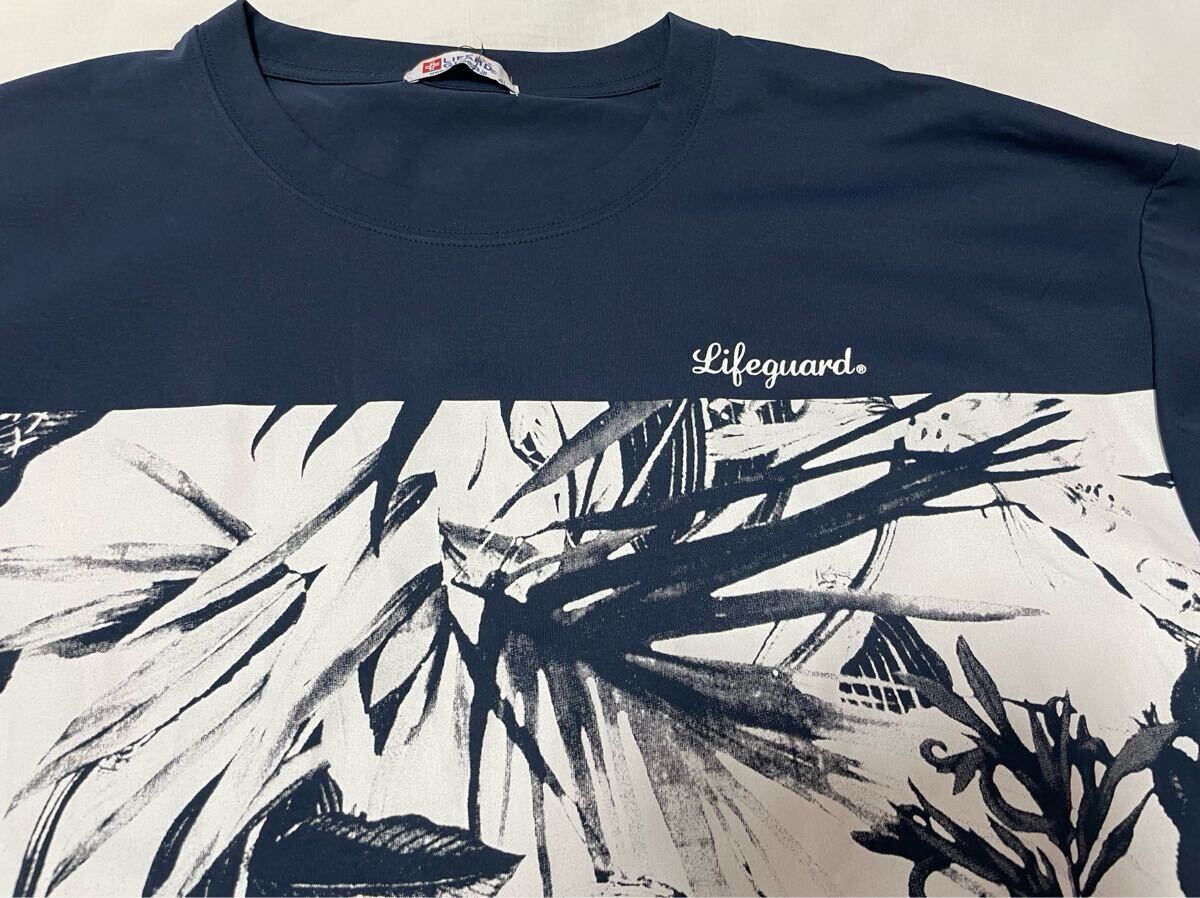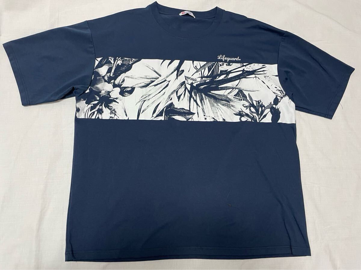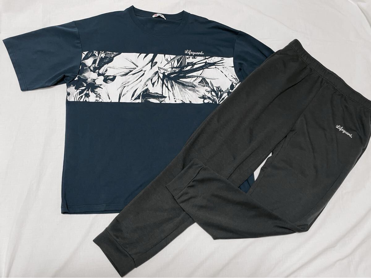 4L●メンズ●新品●上下セット●LIFE GUARD ライフガード 《リーフ柄フォトプリント半袖Tシャツ》《総ゴムロングパンツ》●紺・濃灰