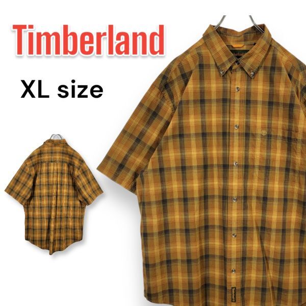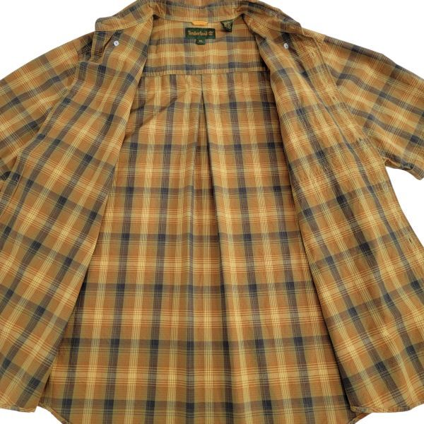 90s Timberland ティンバーランド チェック柄 ボタンダウン BD 半袖シャツ XLサイズ 茶系 ビッグシルエット ビンテージ アウトドア 古着