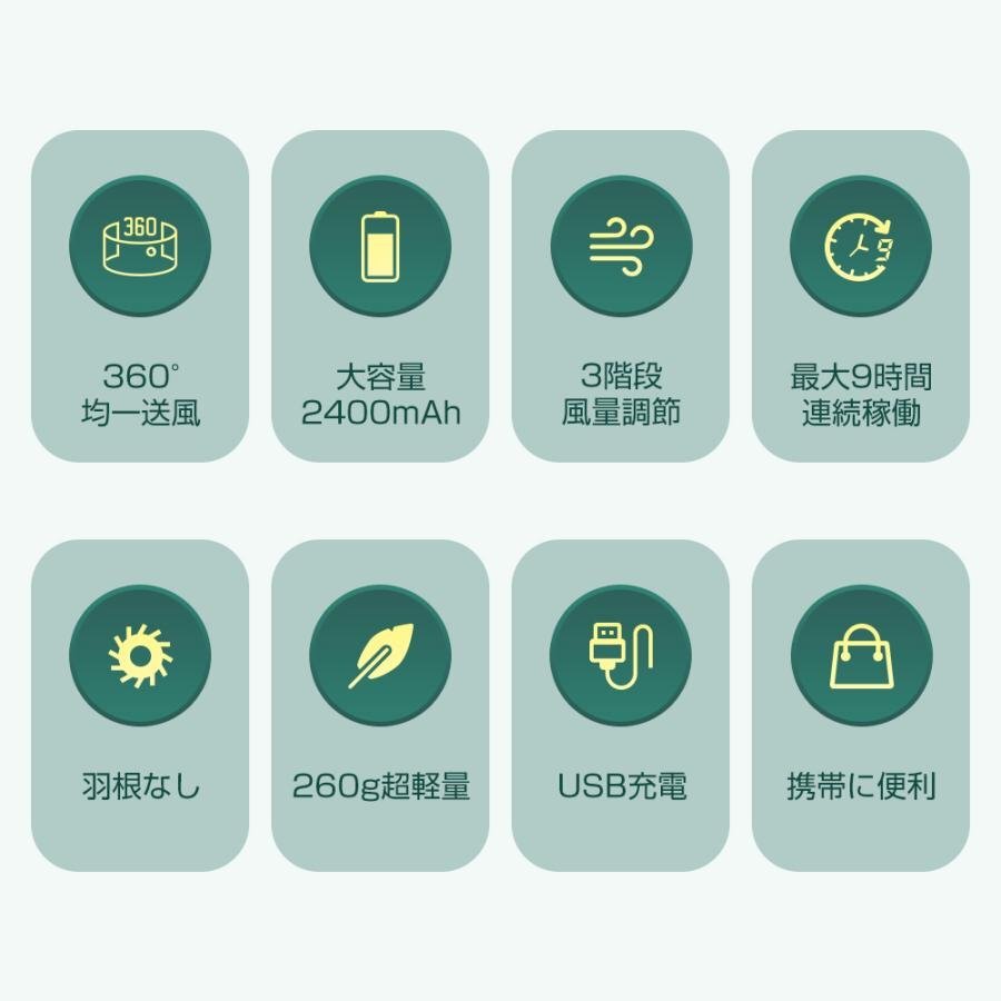 首掛け扇風機 2025 扇風機 ネッククーラー 携帯扇風機 羽なし USB充電式 首掛けファン 熱中症 マスク蒸れ ひんやり音 色:グリーン