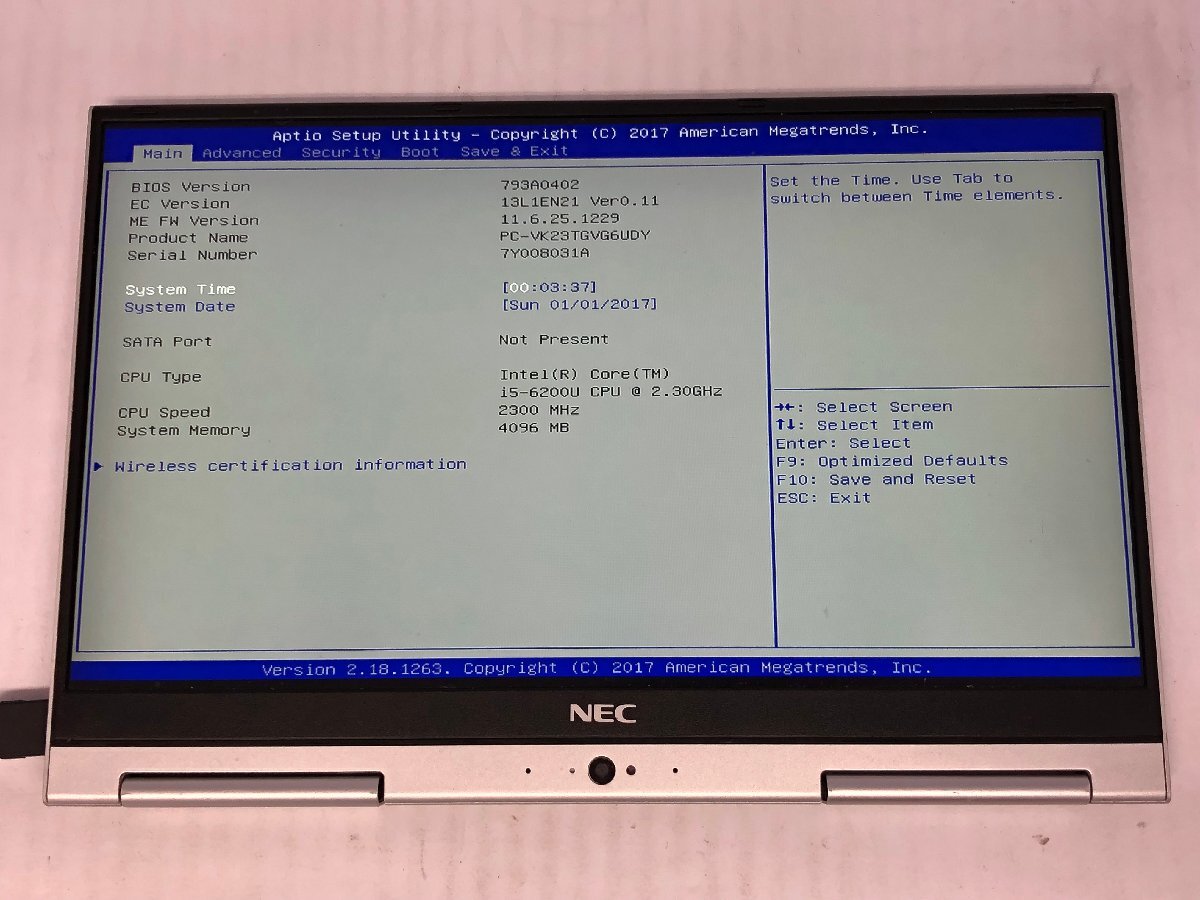 ジャンク/ NEC PC-VK23TGVG6UDY Intel Core i5-6200U メモリ4.1GB ストレージ無し 【K14562】