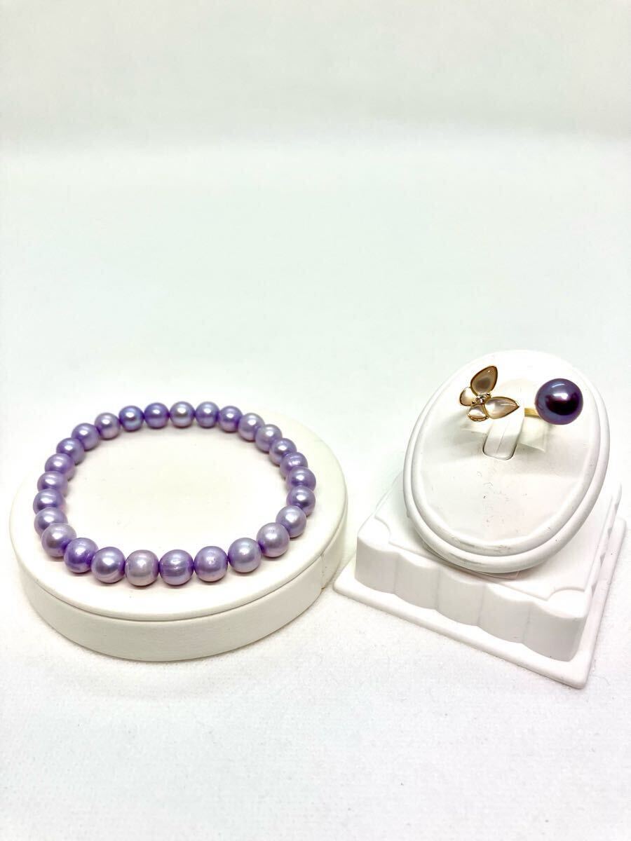 淡水のバロック真珠のブレスレットと、リングの2点セットです。