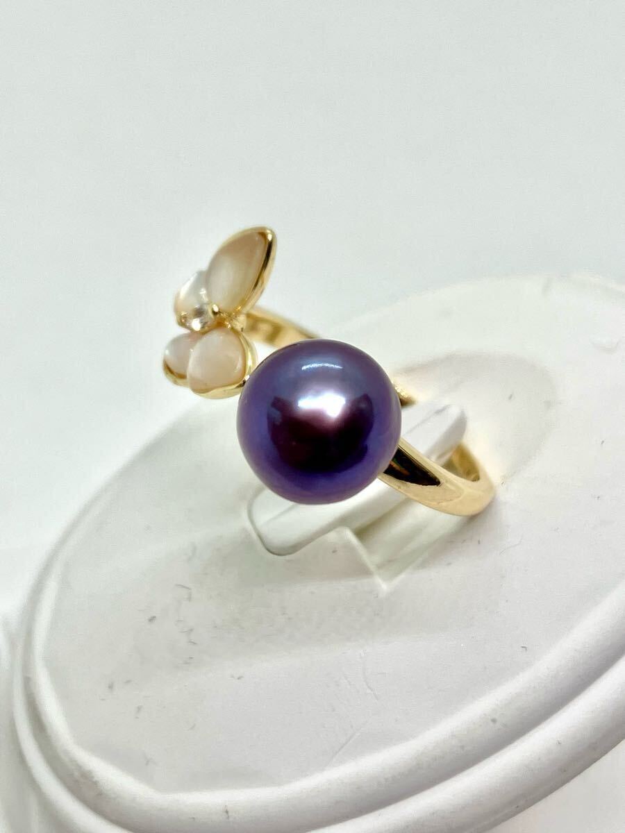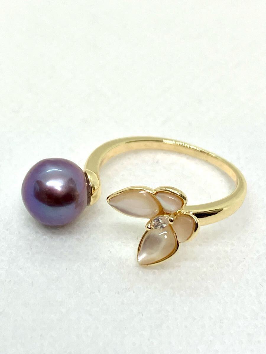 約8㎜珠の淡水パールで、お色目は、パープル(淡水処理)がかった色です。とても、テリ(光沢)があり美しい淡水パールです。