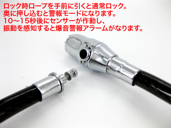 ■ロックして10~15秒後にセンサーが作動し、振動を感知すると爆音警報アラームが鳴る。