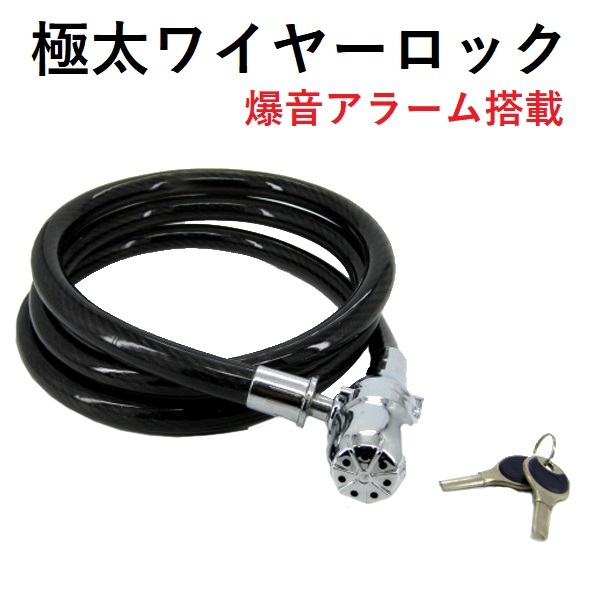 ★極太★ ワイヤー キーロック センサー 警報付き 大音量 自転車 2m