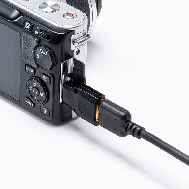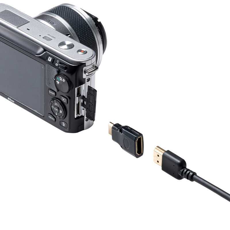 HDMIケーブルをデジカメなどのミニHDMI(HDMIタイプC)端子に変換するアダプタ