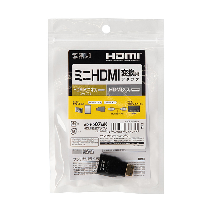 HDMIミニオス HDMIメス SANWA SUPPLY AD-HD07MK 金pin