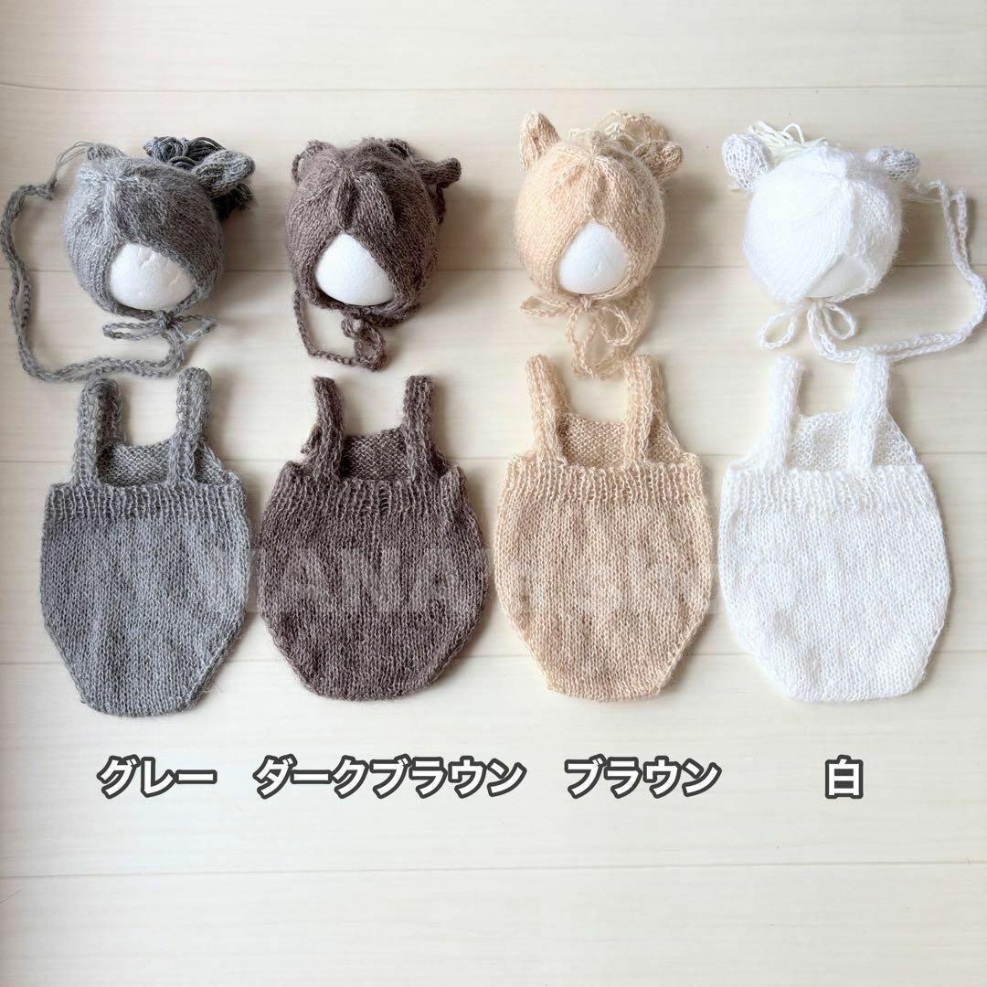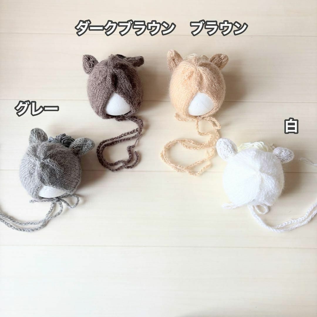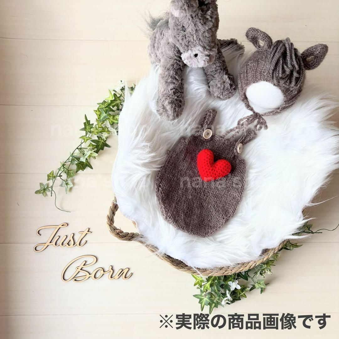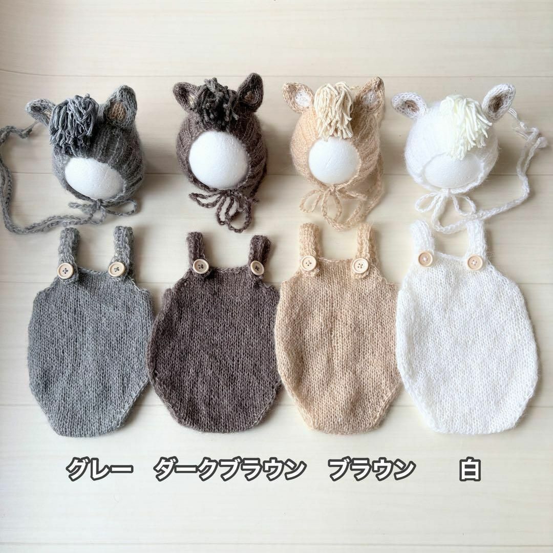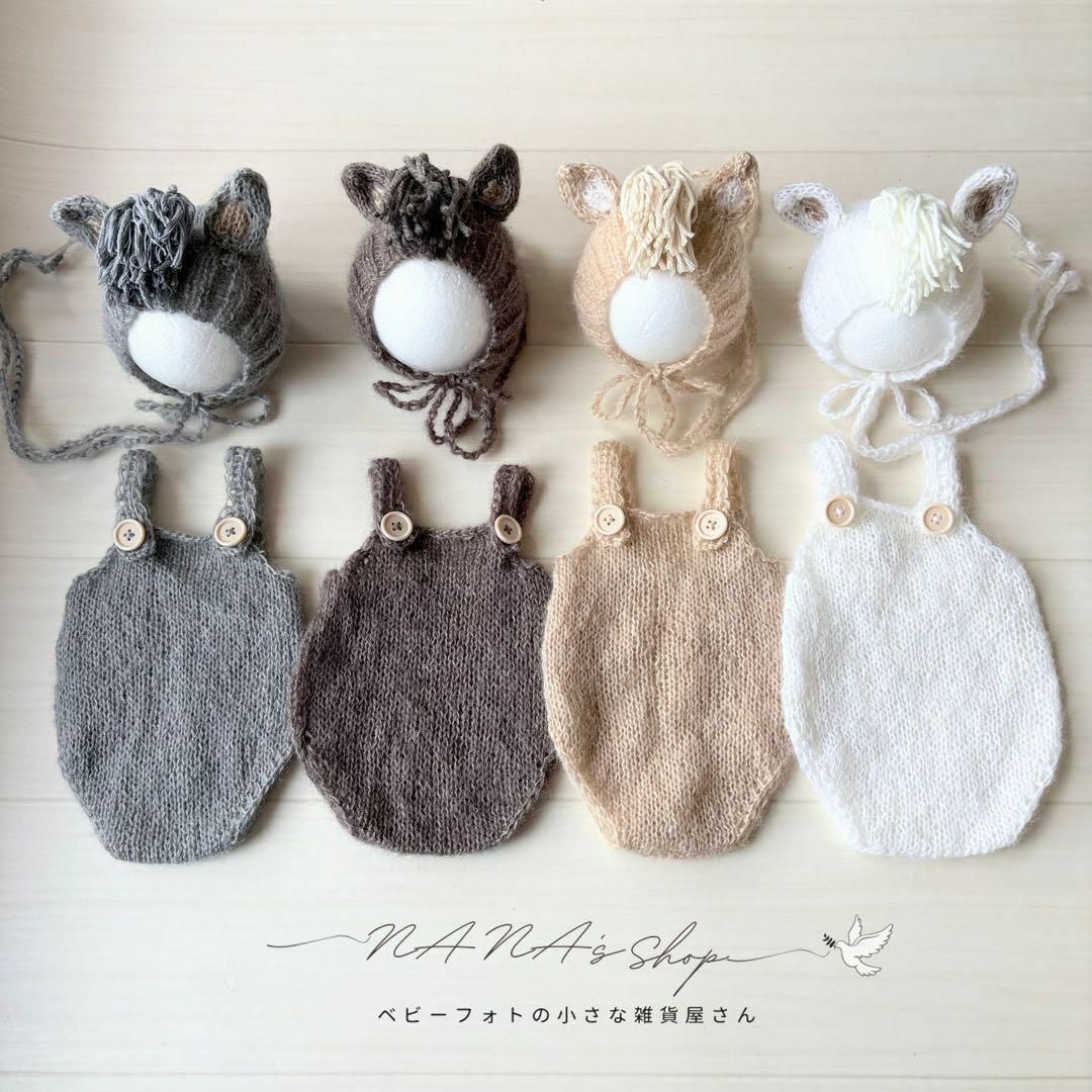 ニューボーンフォトのコスチューム、馬ボンネットとロンパースの2点セット。