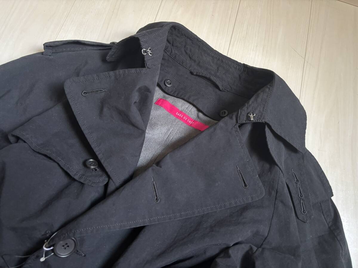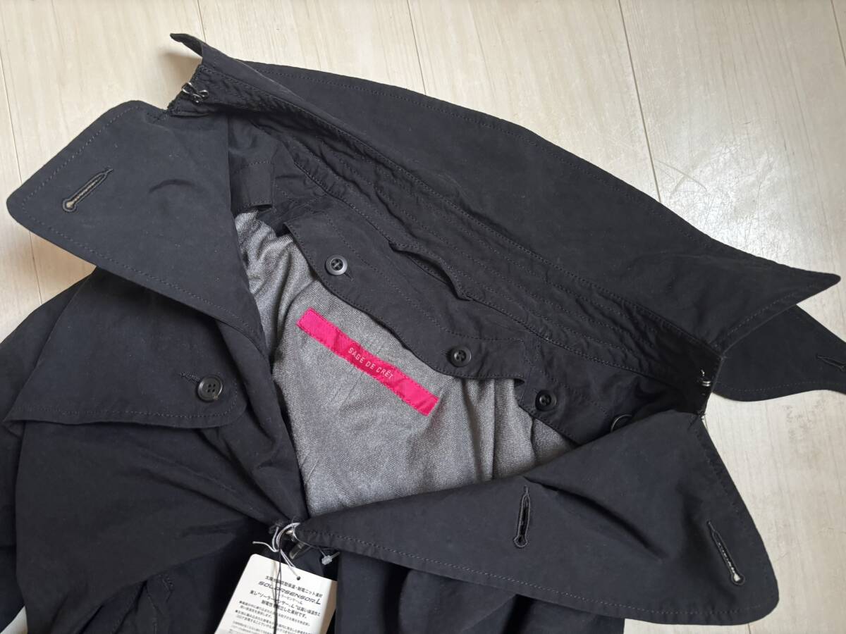 新品 sage de cret サージュデクレ コート ロング トレンチ ミリタリー 黒 ブラック S ポリ ナイロン ベルテッド ライナー ▼0565