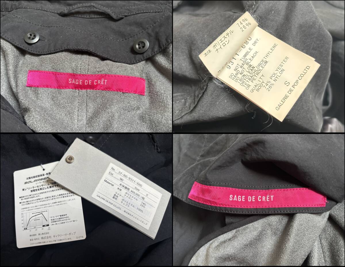 新品 sage de cret サージュデクレ コート ロング トレンチ ミリタリー 黒 ブラック S ポリ ナイロン ベルテッド ライナー ▼0565  になります。