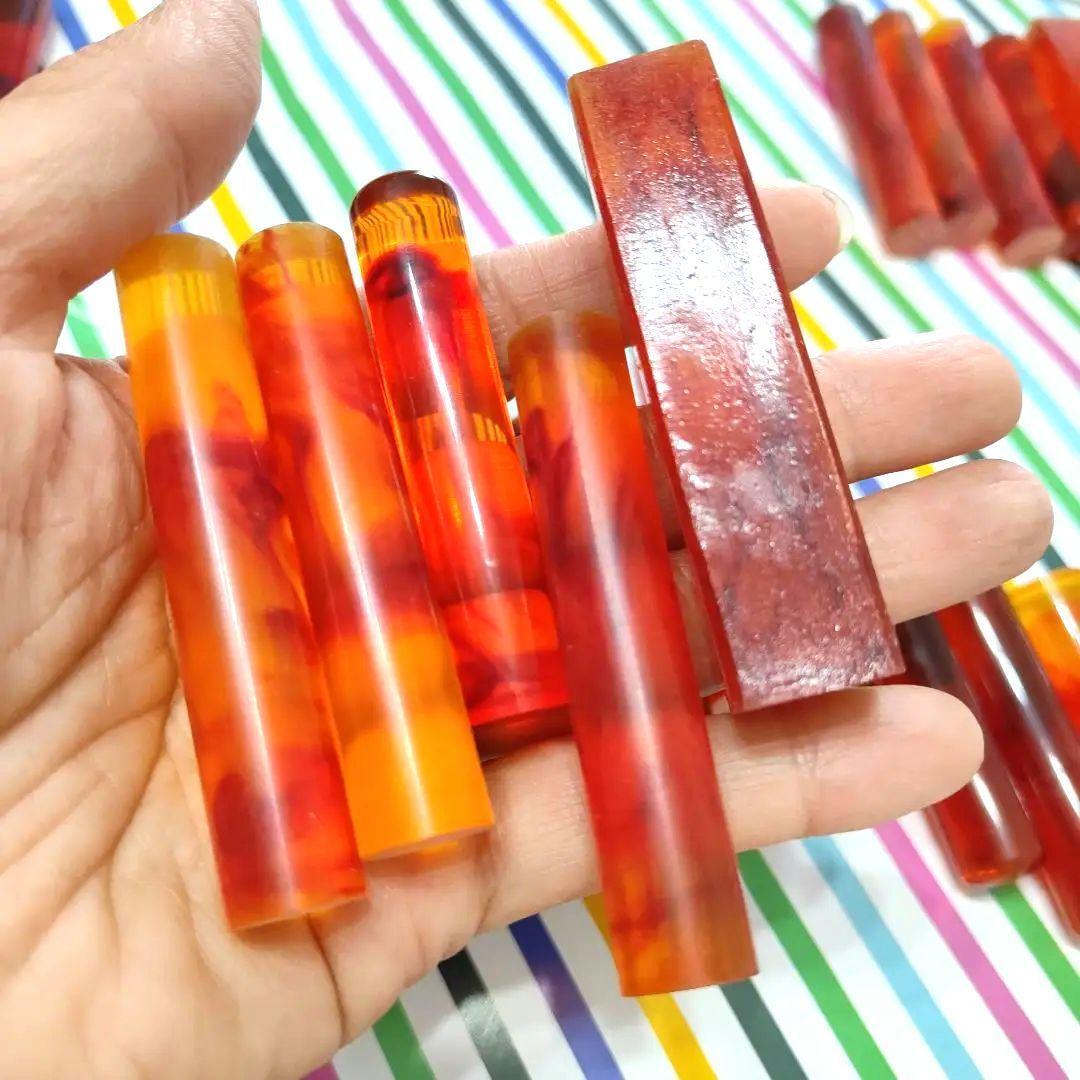 印材まとめ売り 49本 メノウ樹脂 天・側面加工有り無し混在 在庫処分 自宅保管