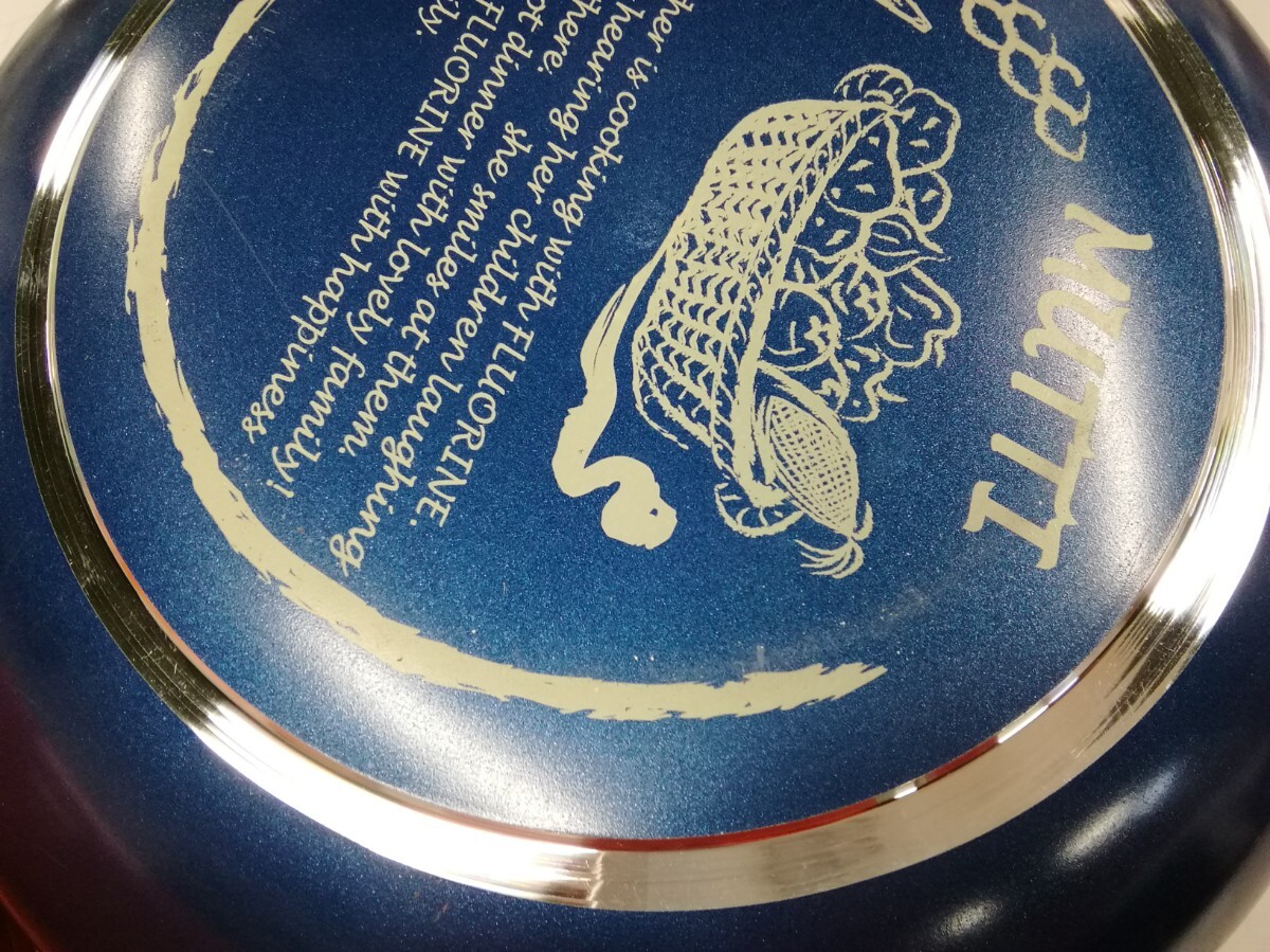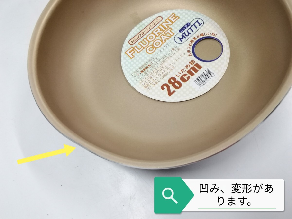 いため鍋裏底に画像⑨のように細かなキズ、画像③④のように変形、凹みがあります。