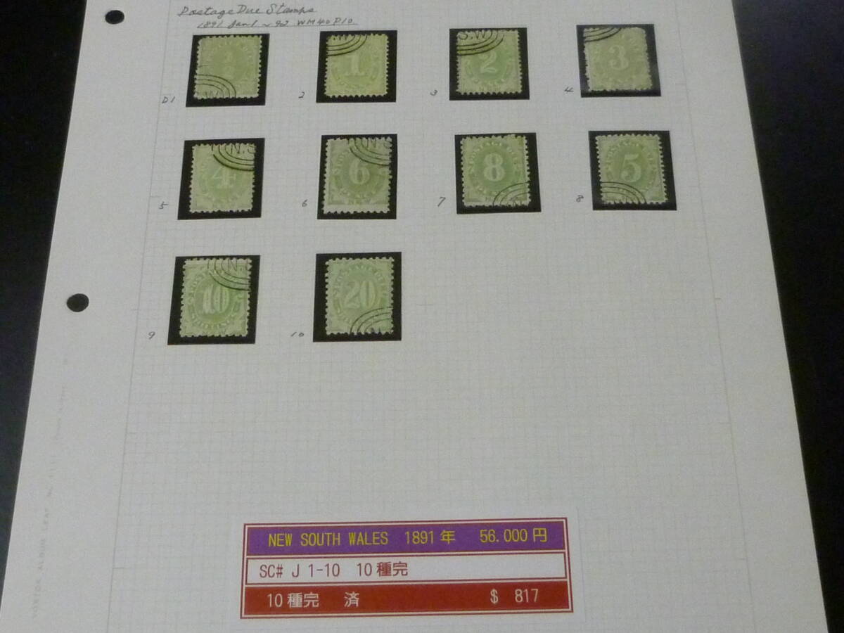 23L M №18 オーストラリア切手 NEW SOUTH WALES 1891年 クラシック 不足 SC#J1-10 10種完 使用済 【SC評価 $817】
