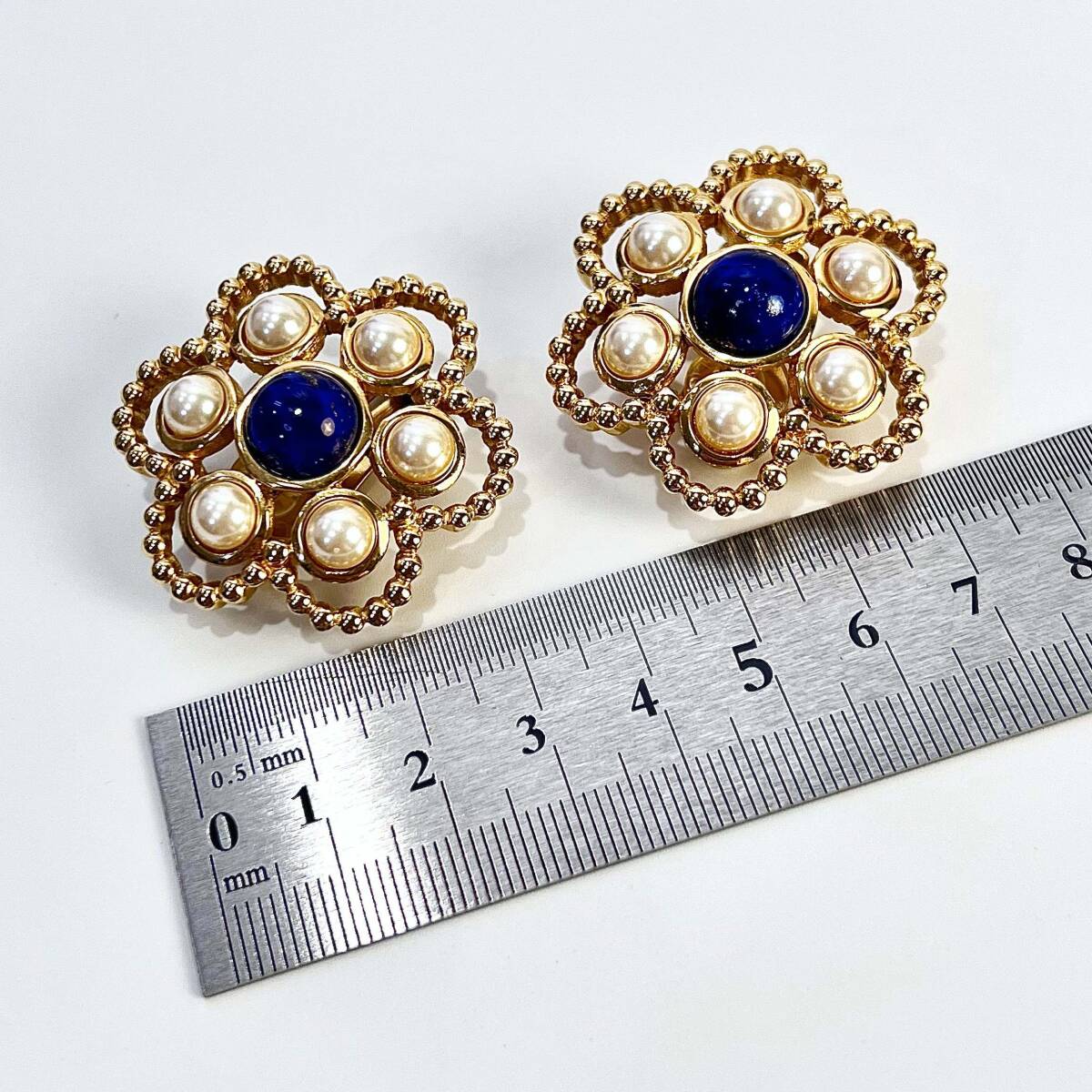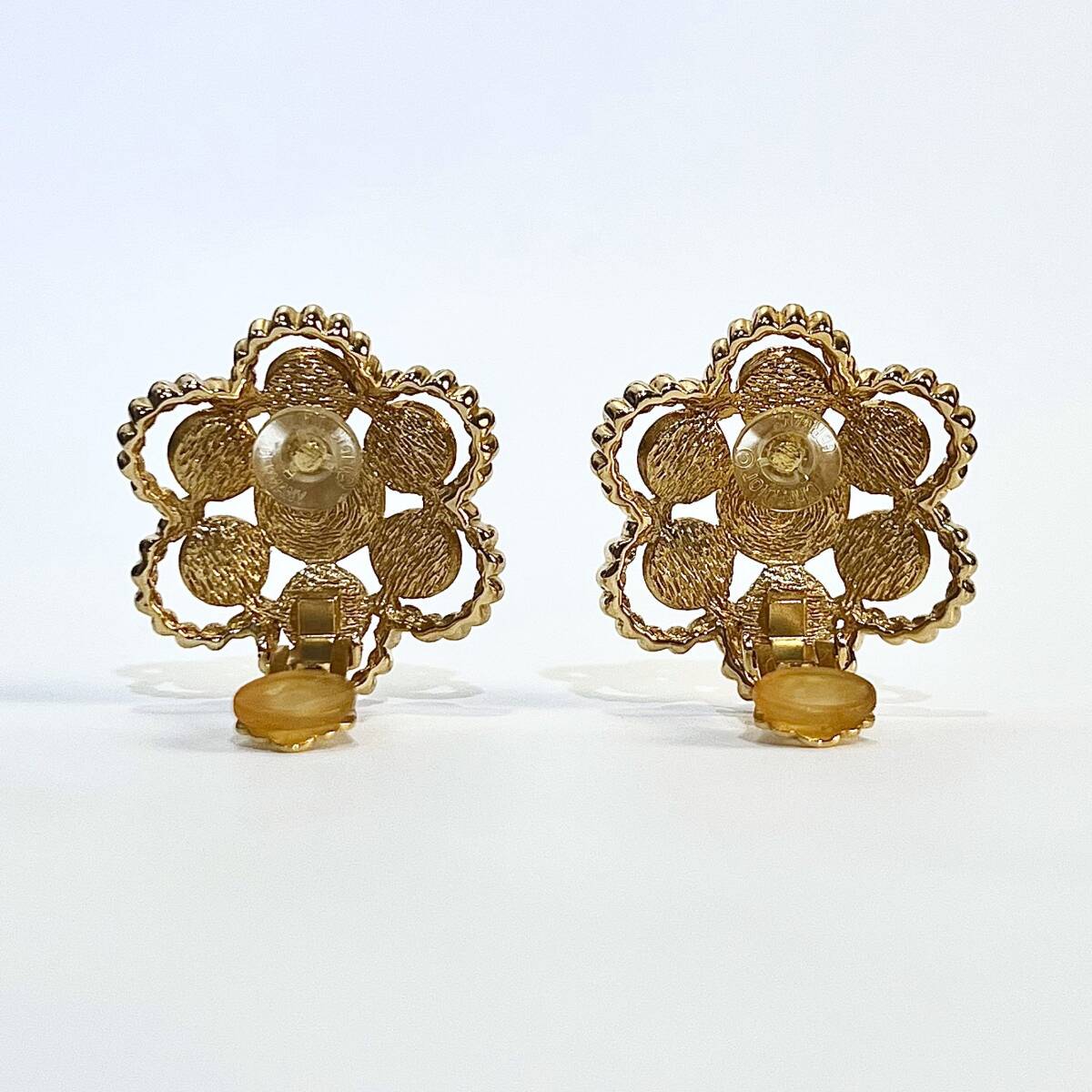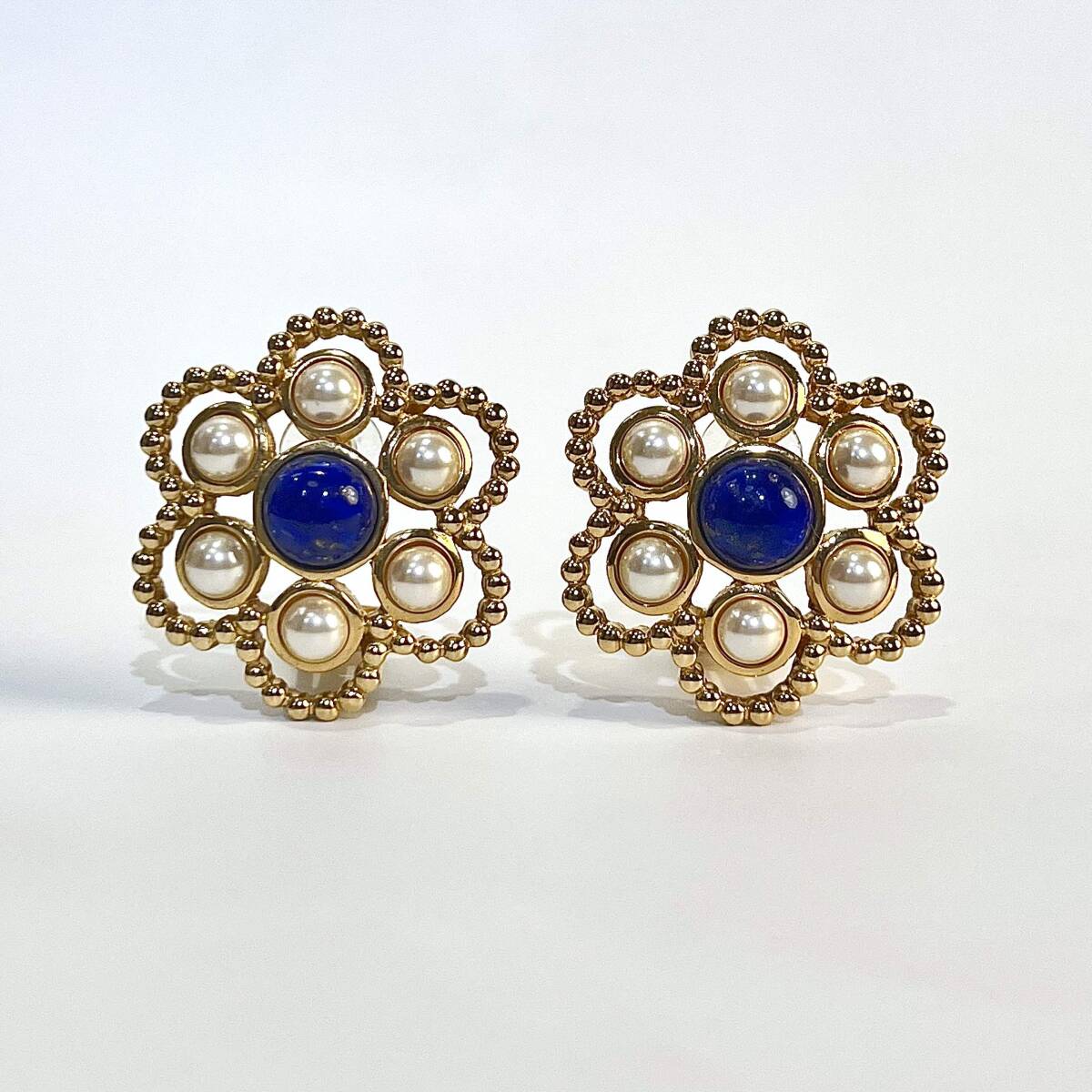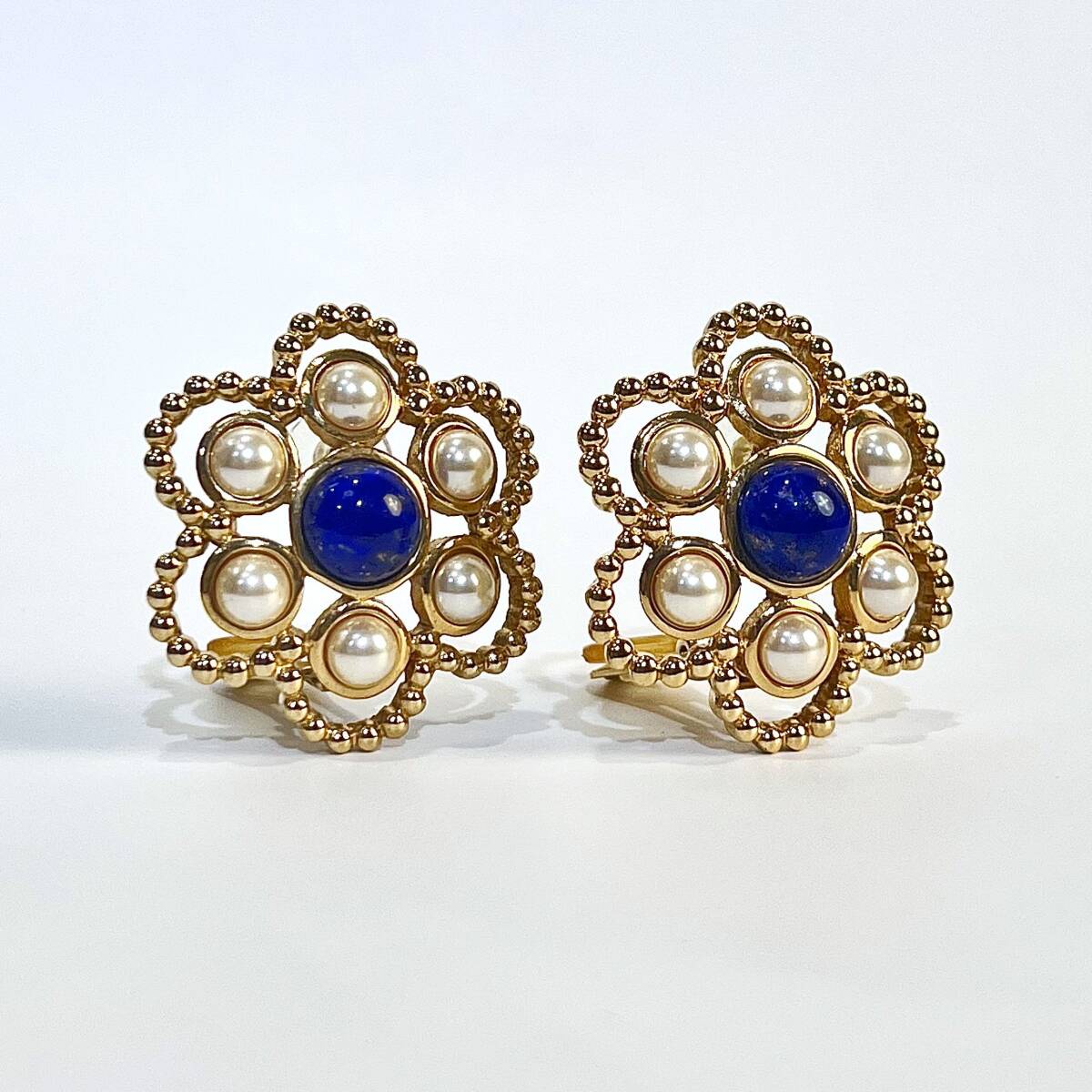 商品名:フラワー モチーフ フェイクパール カラーストーン イヤリング