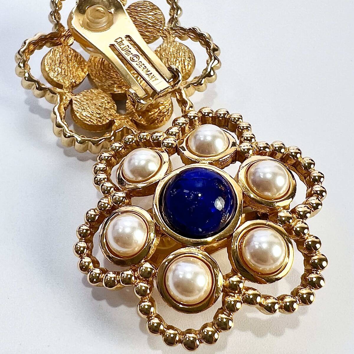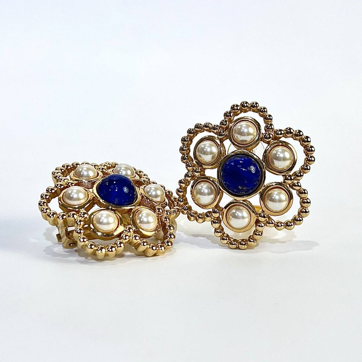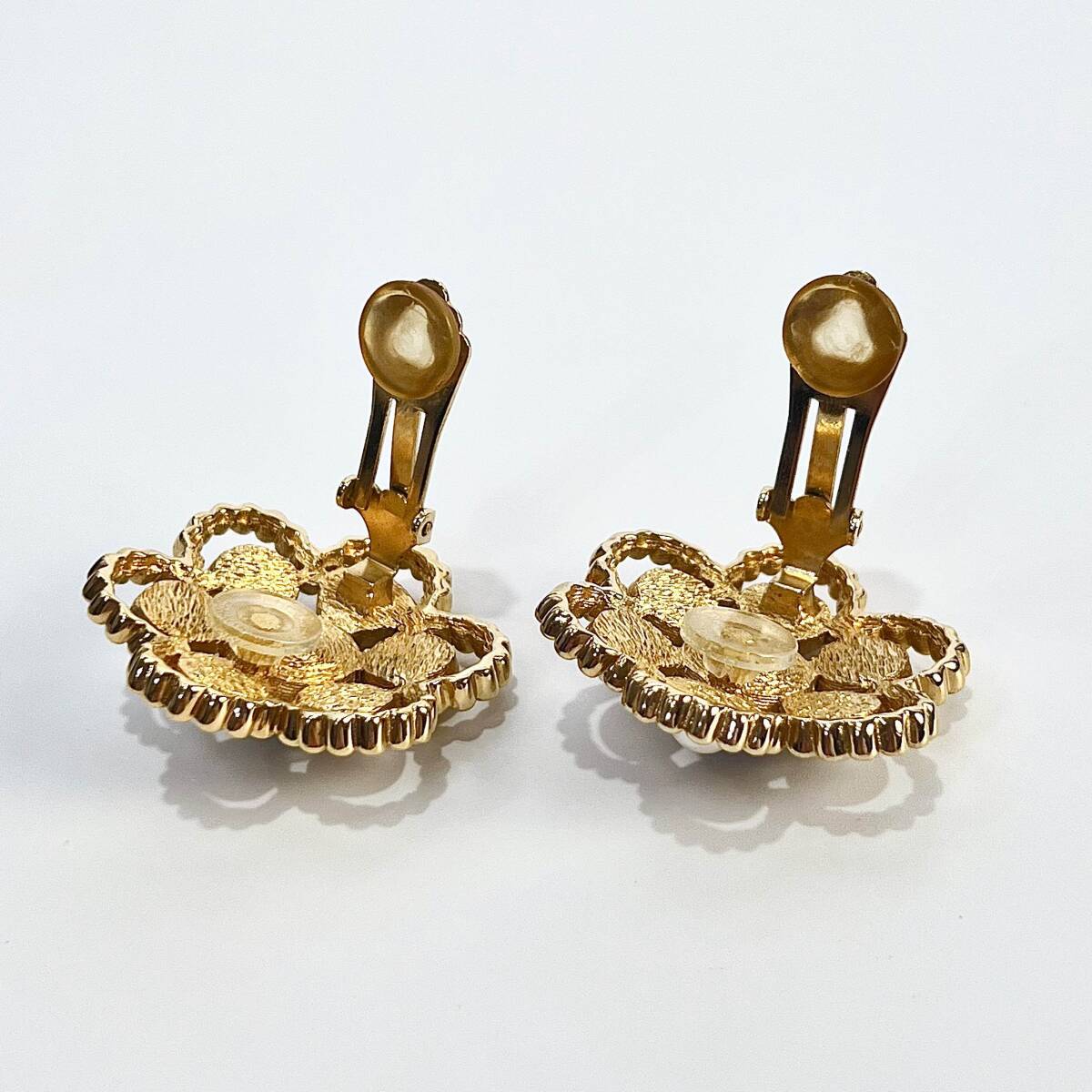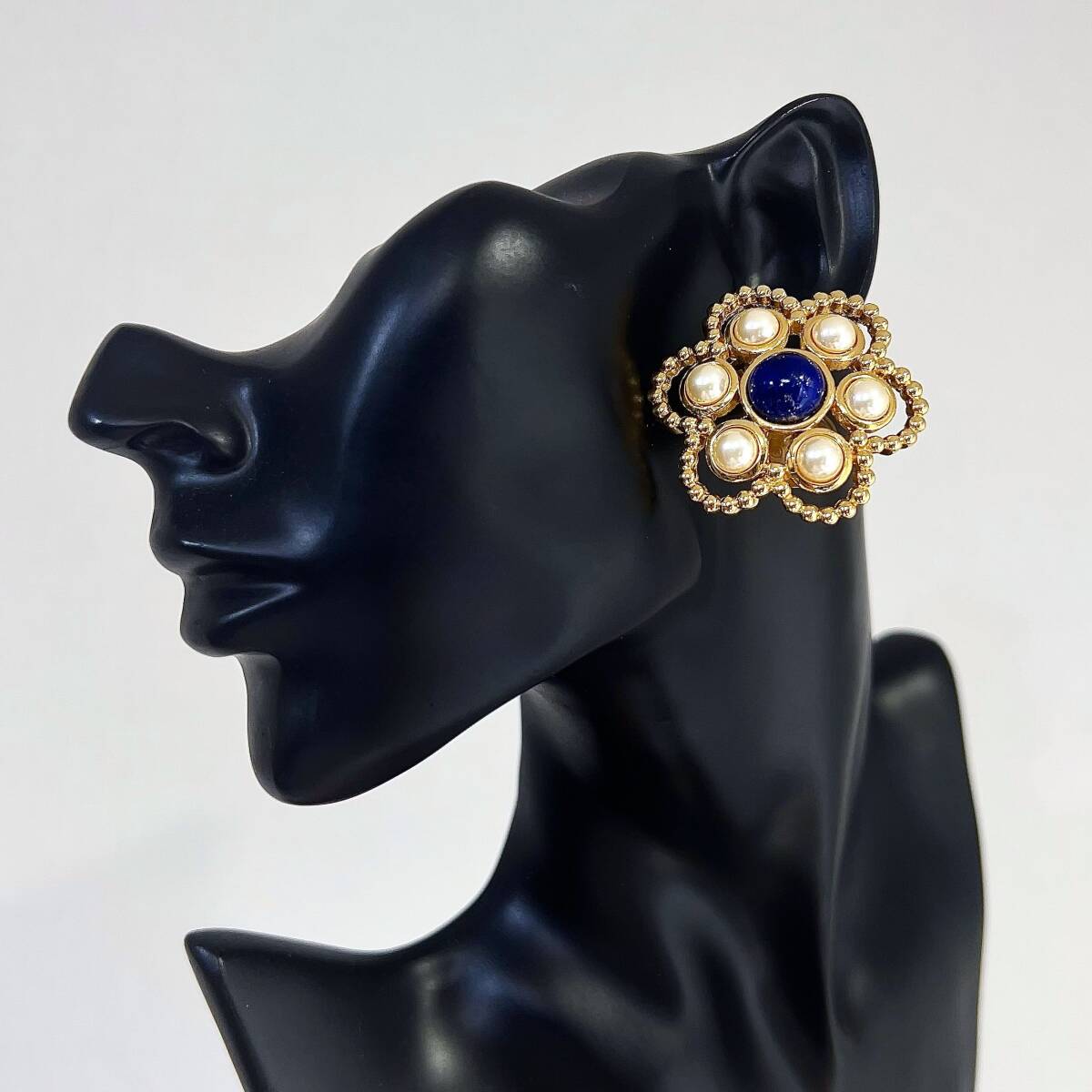 商品名:フラワー モチーフ フェイクパール カラーストーン イヤリング