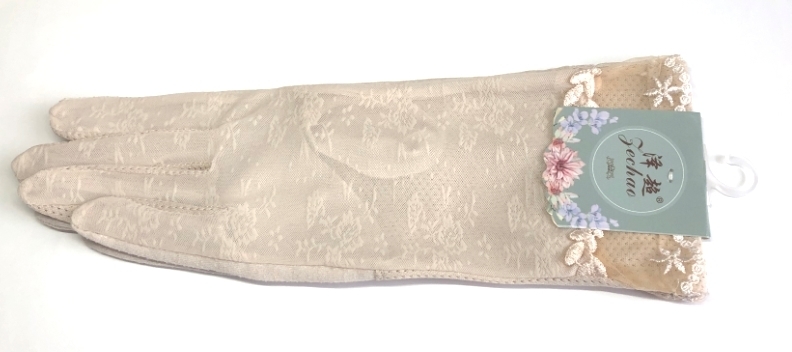 レディース UVカット日焼止め レース花飾り手袋(F05A)ベージュ