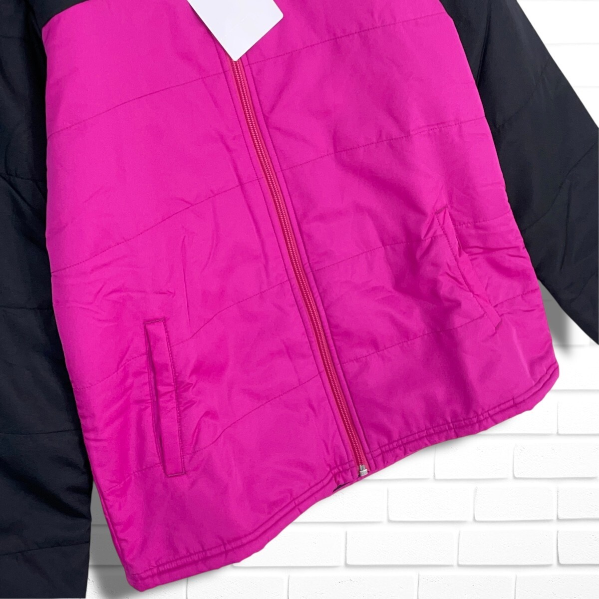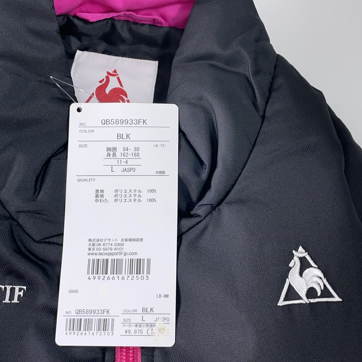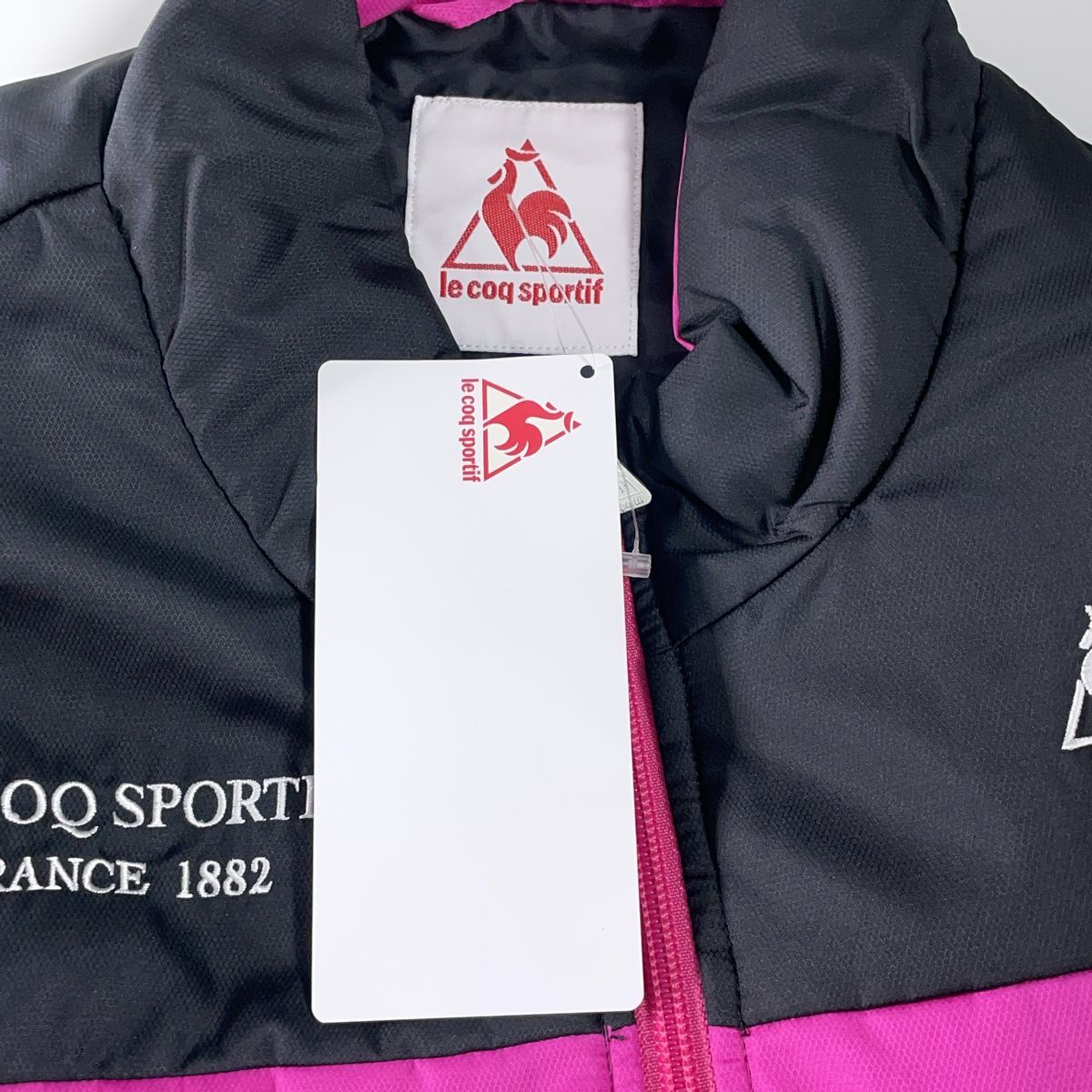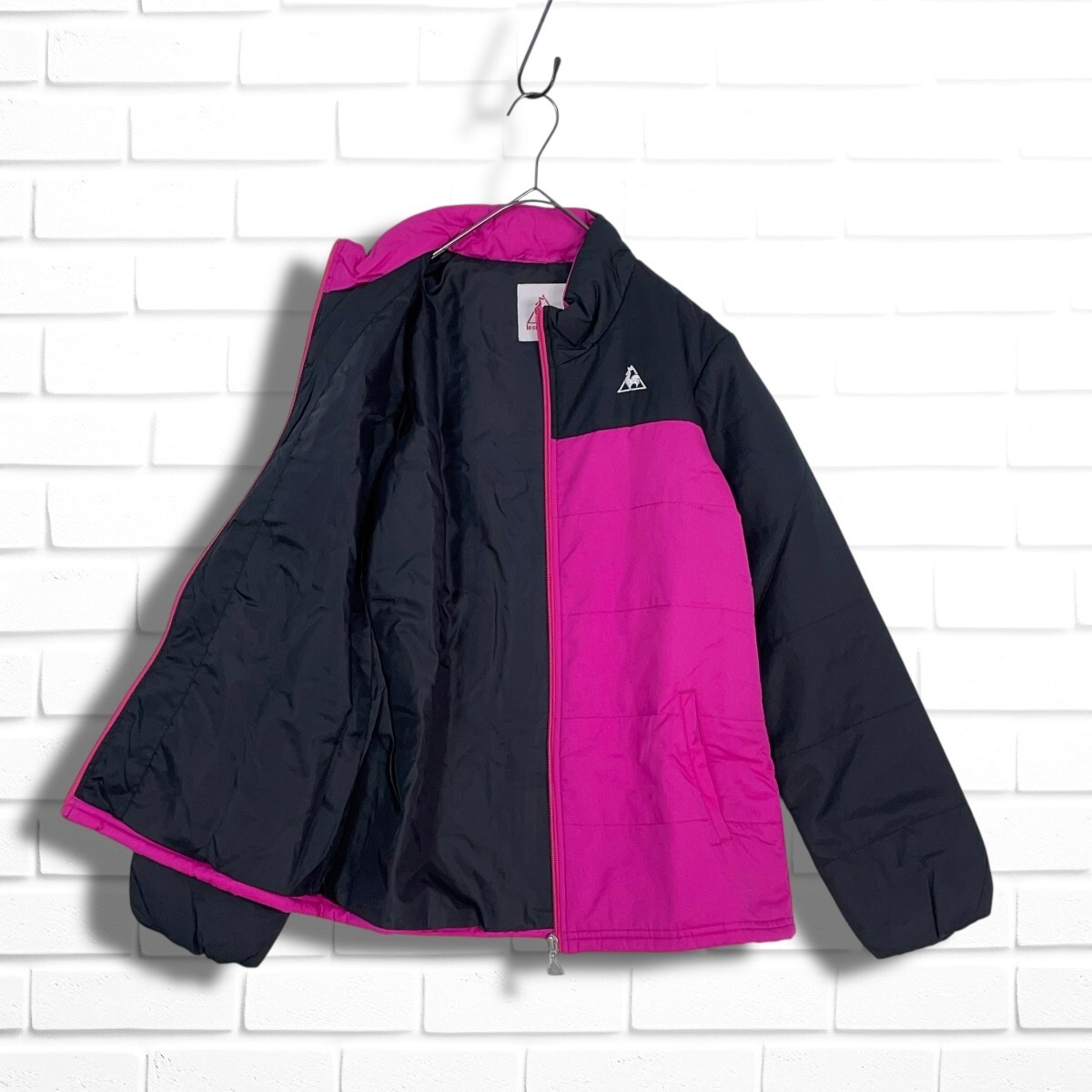 ◆新品◆ le coq sportif ルコック ロゴ 刺繍 中綿 ジャケット ブルゾン 黒 ブラック ピンク レディース L ◆タグ付き 送料無料◆ 3355E◇