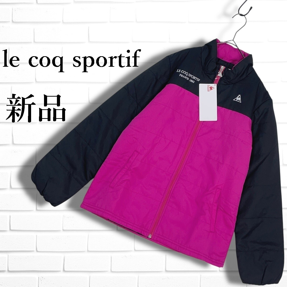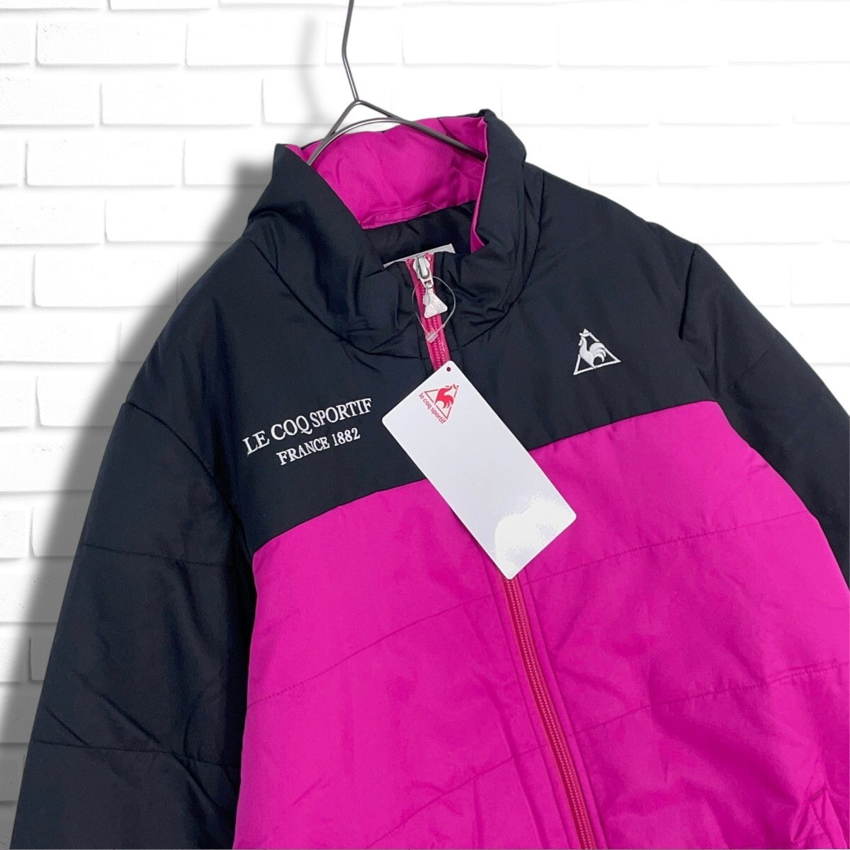 ◆新品◆ le coq sportif ルコック ロゴ 刺繍 中綿 ジャケット ブルゾン 黒 ブラック ピンク レディース L ◆タグ付き 3355E◇