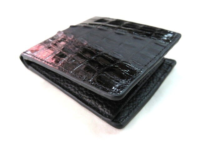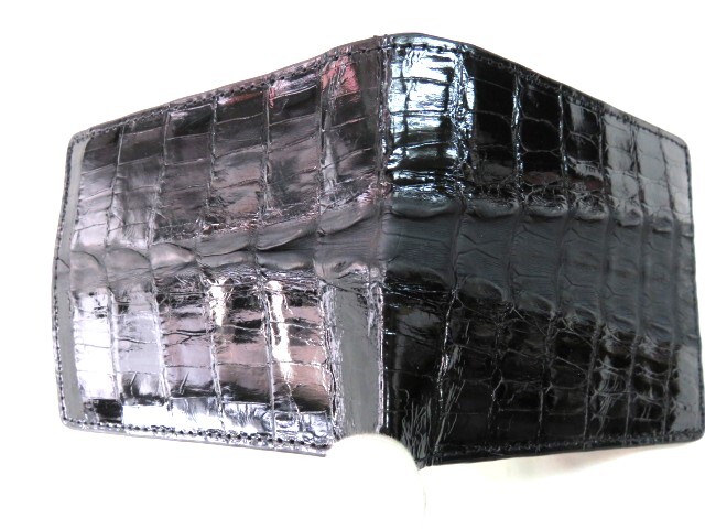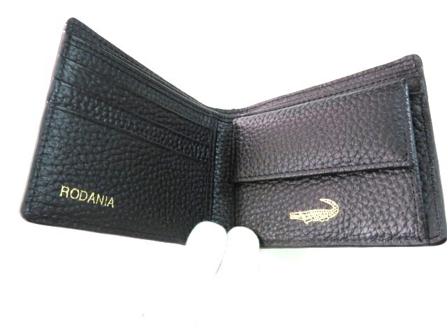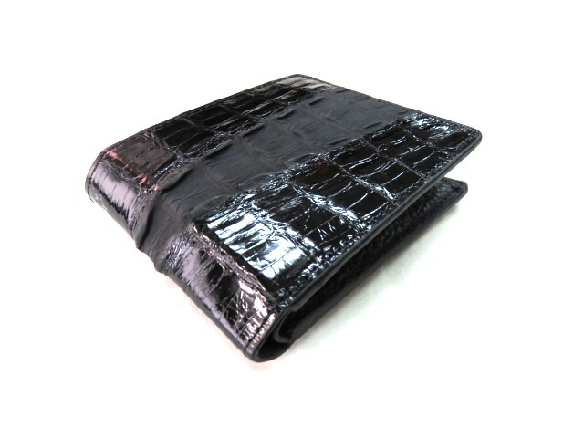 LQ 新品 高級 RODANIA ロダニア 本物 クロコダイル 二つ折り財布 ブラック メンズ 男性用 レザー