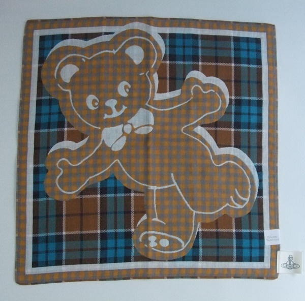 Vivienne Westwood ヴィヴィアン・ウエストウッド タータンチェック テディベア クマ くま柄 ガーゼ ハンカチ 未使用品