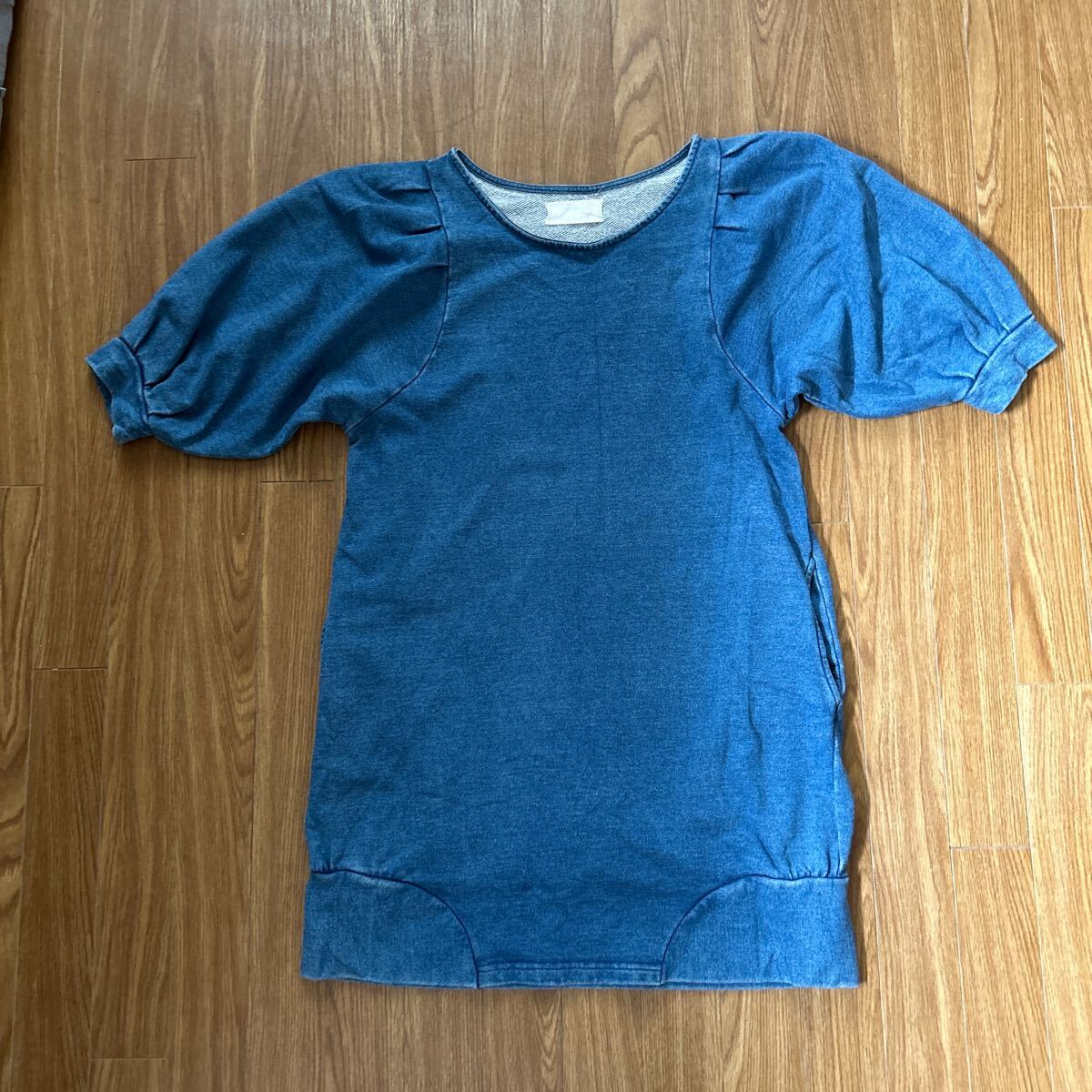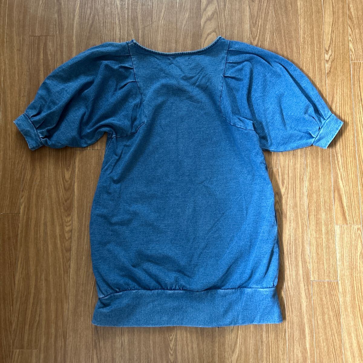 ★JEANASIS ジーナシス★ チュニック 半袖 カットソー Tシャツ デニム風 綿100% かわいい シンプル サイズフリー