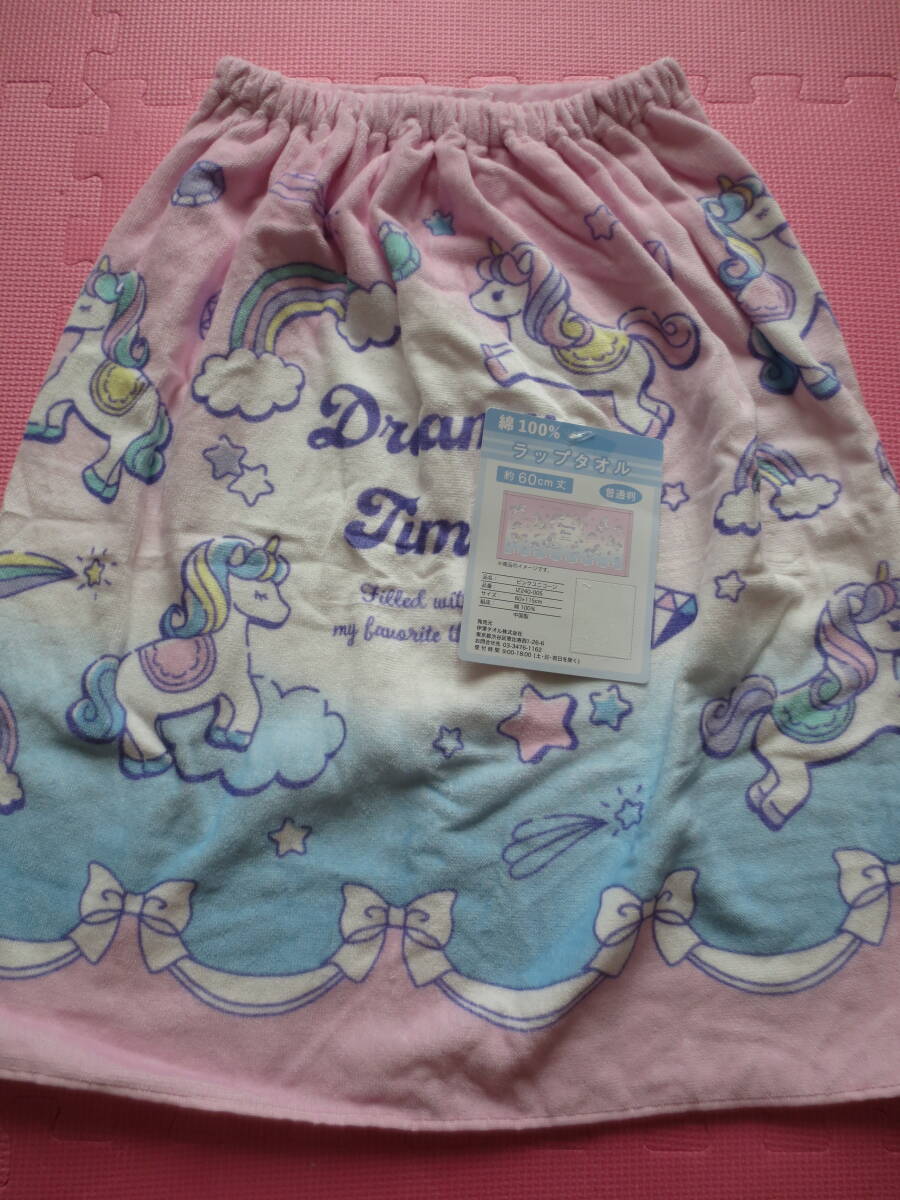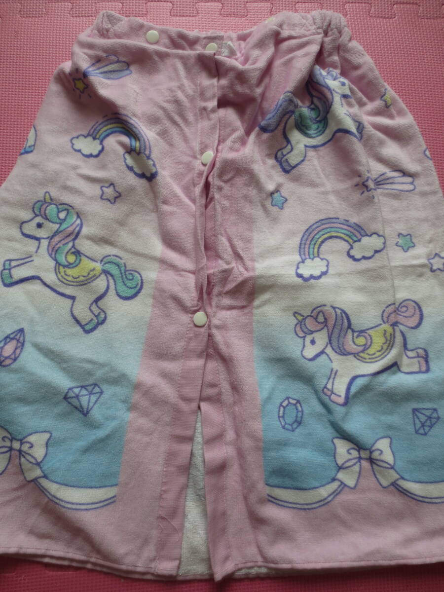 新品 ユニコーン柄 ラップタオル 60cm 綿100% ピンク かわいい プールタオル スナップ付き 巻きタオル 保育園 幼稚園 小学生 水泳 送料無料