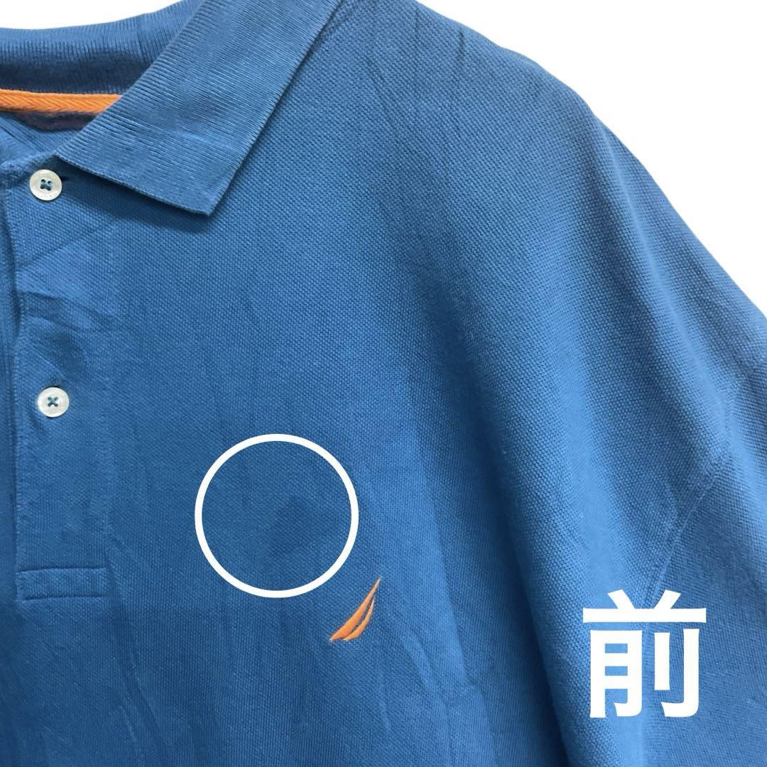 胸の刺ロゴの上、ボタンの下に薄いシミあります。