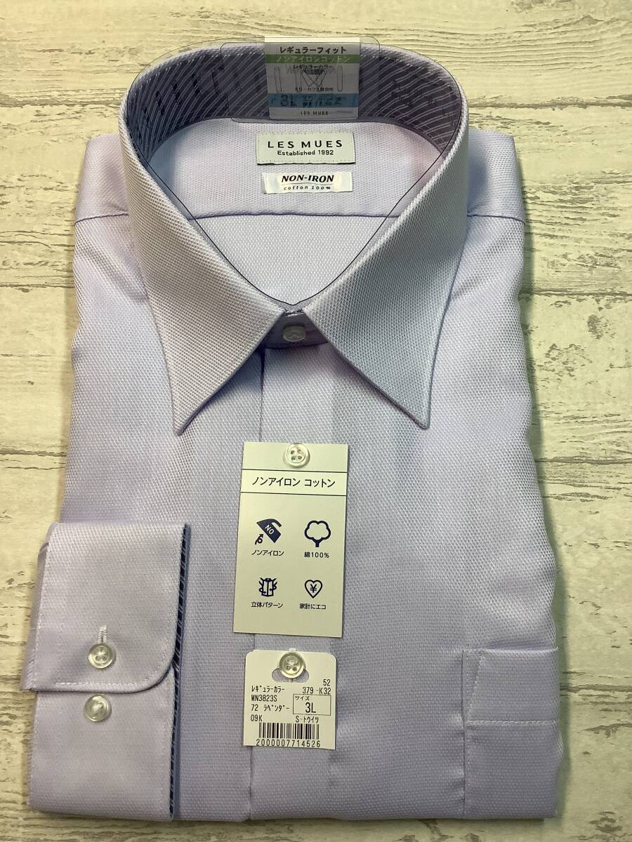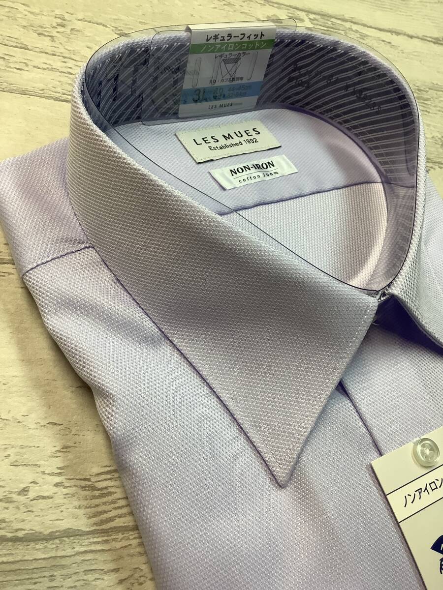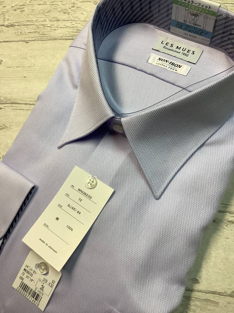 新品未使用★ 45-84 3Lサイズ ★綿100% ★レギュラーカラードレスシャツ ★ラベンダー色