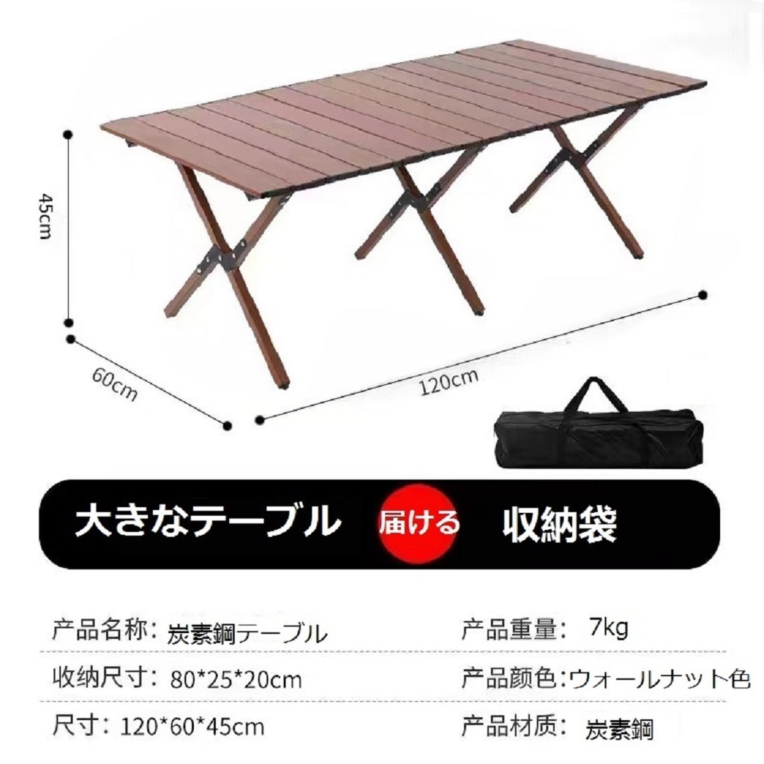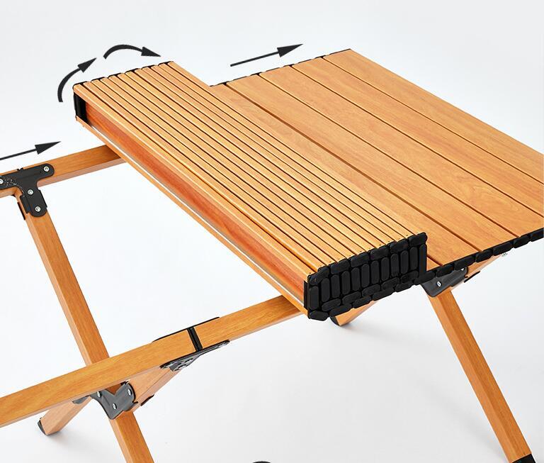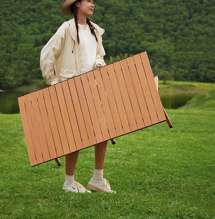 新入荷高品質折りたたみテーブル ロールトップテーブル キャンプテーブル 簡単組立 収納バッグ付 軽量コンパクト (木の色)3色