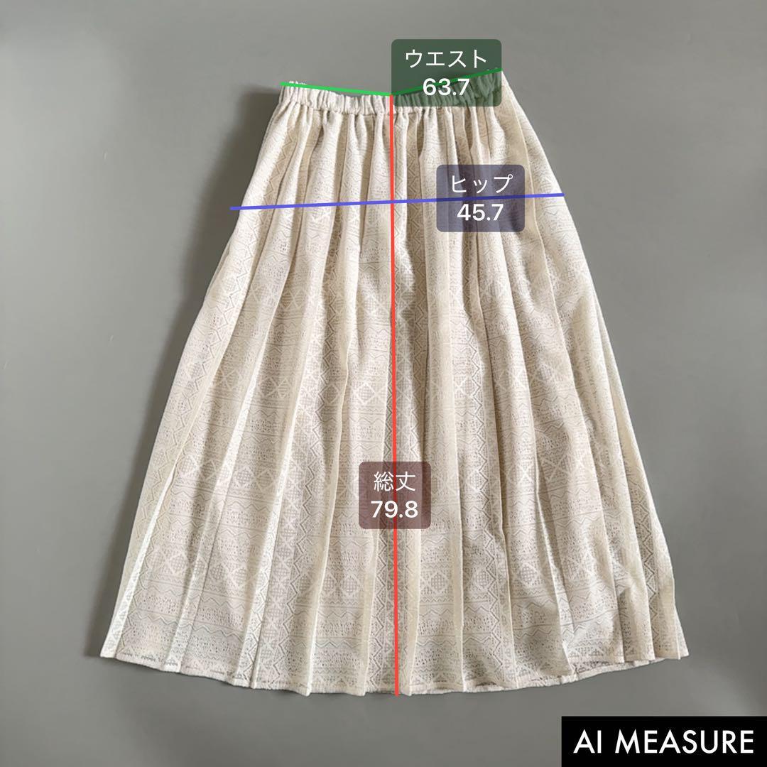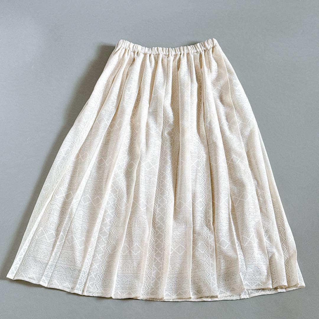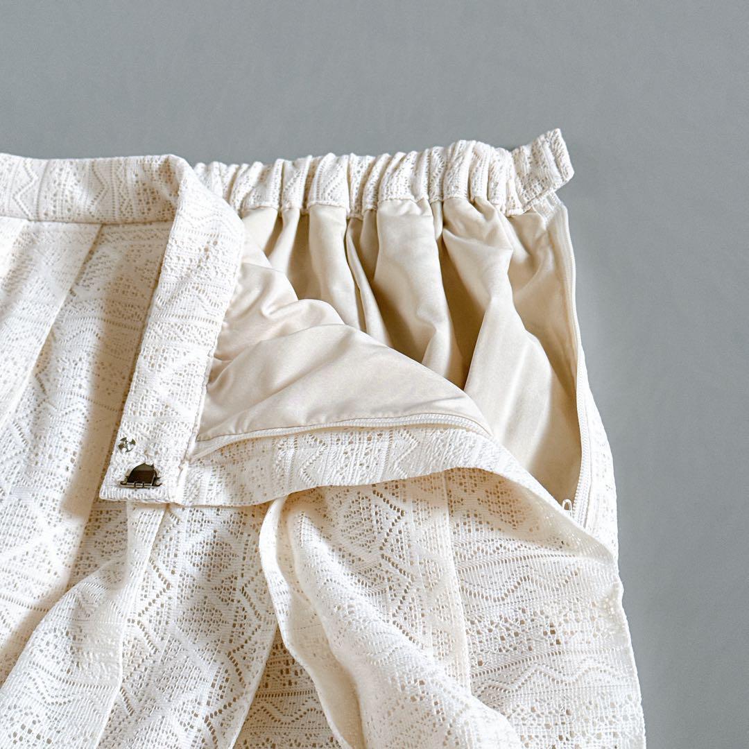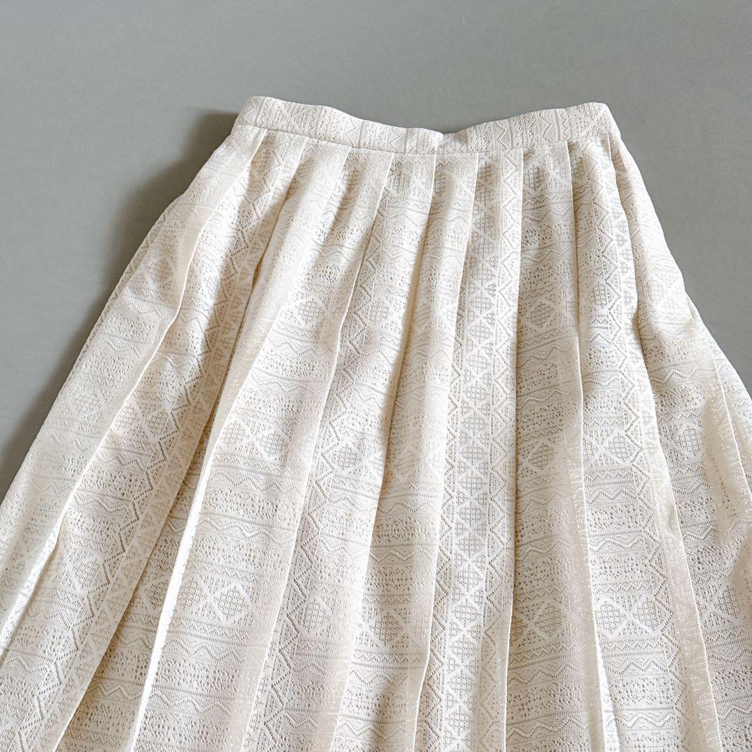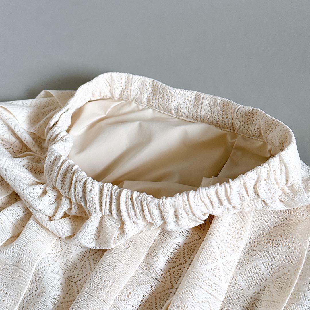 軽やかで柔らかなレース素材とプリーツの組み合わせが可愛いスカート。