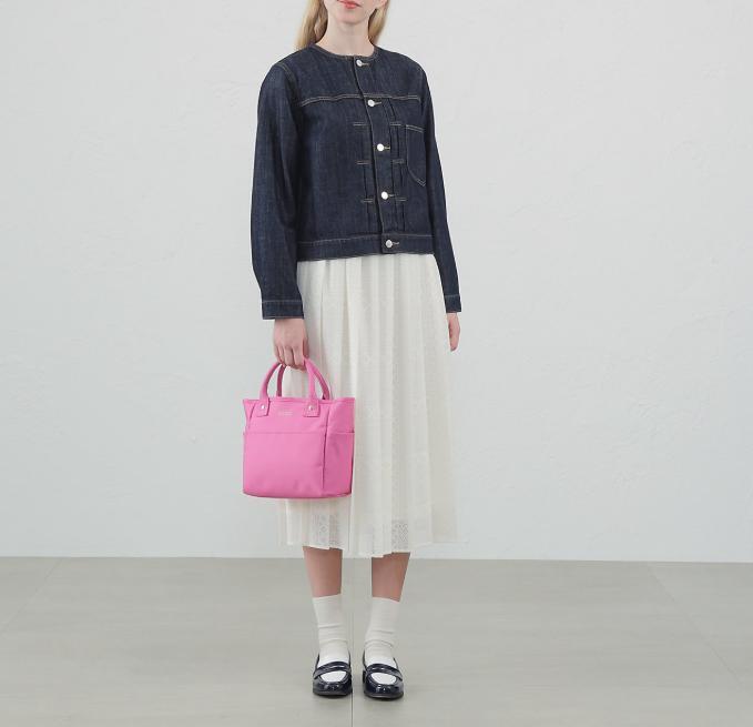 ジオメトリックモチーフが上品なアクセントとなり、大人も甘すぎず着こなせるデザインです。