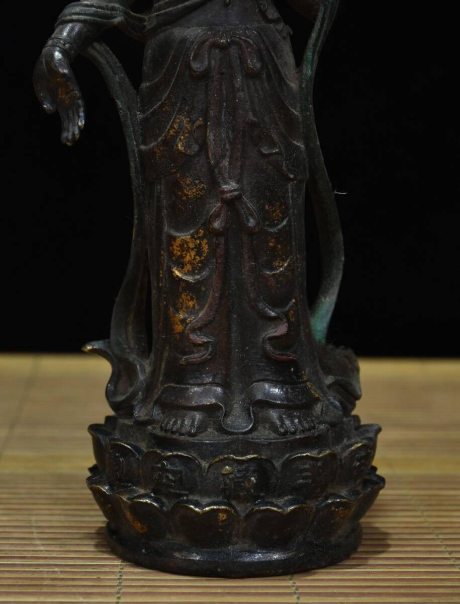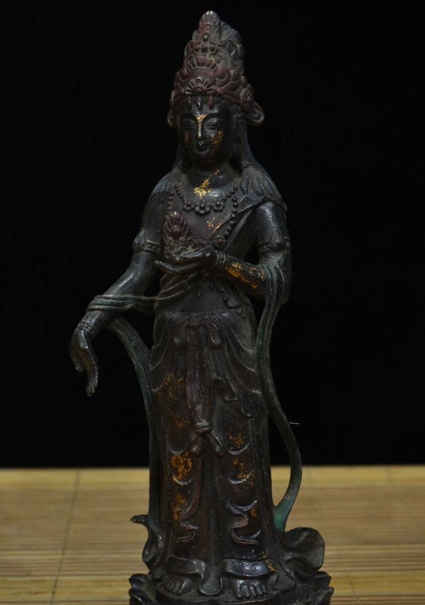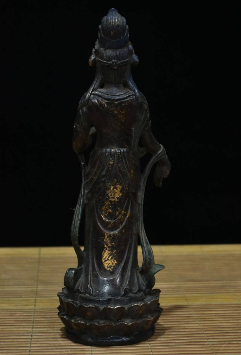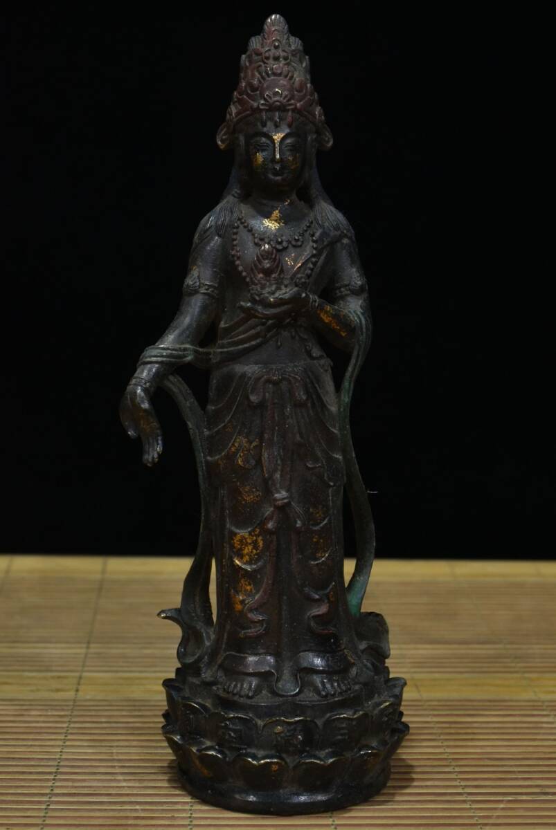 *珍品旧蔵* 清 銅拓金 站蓮花觀音 仏像 精銅鑄造 置物 銅製品 銅器 極細工 唐物 中国古玩 骨董品 古美味 H45