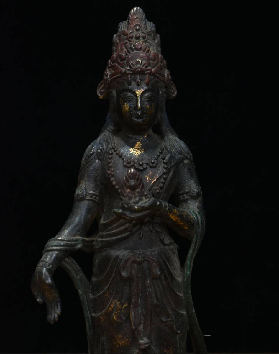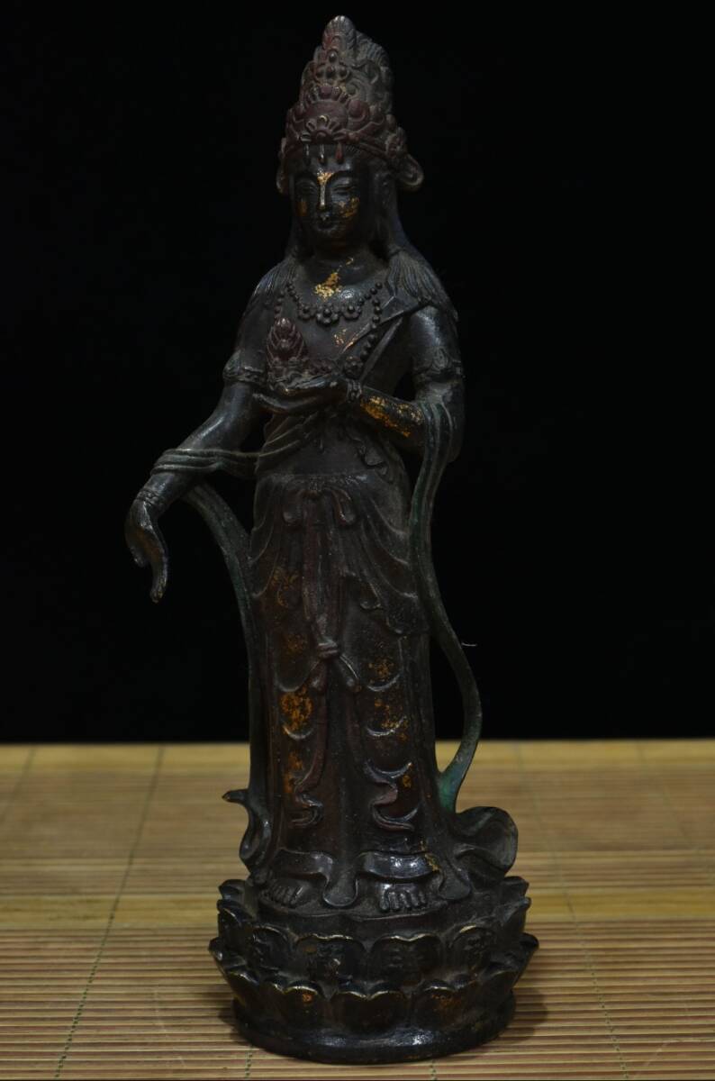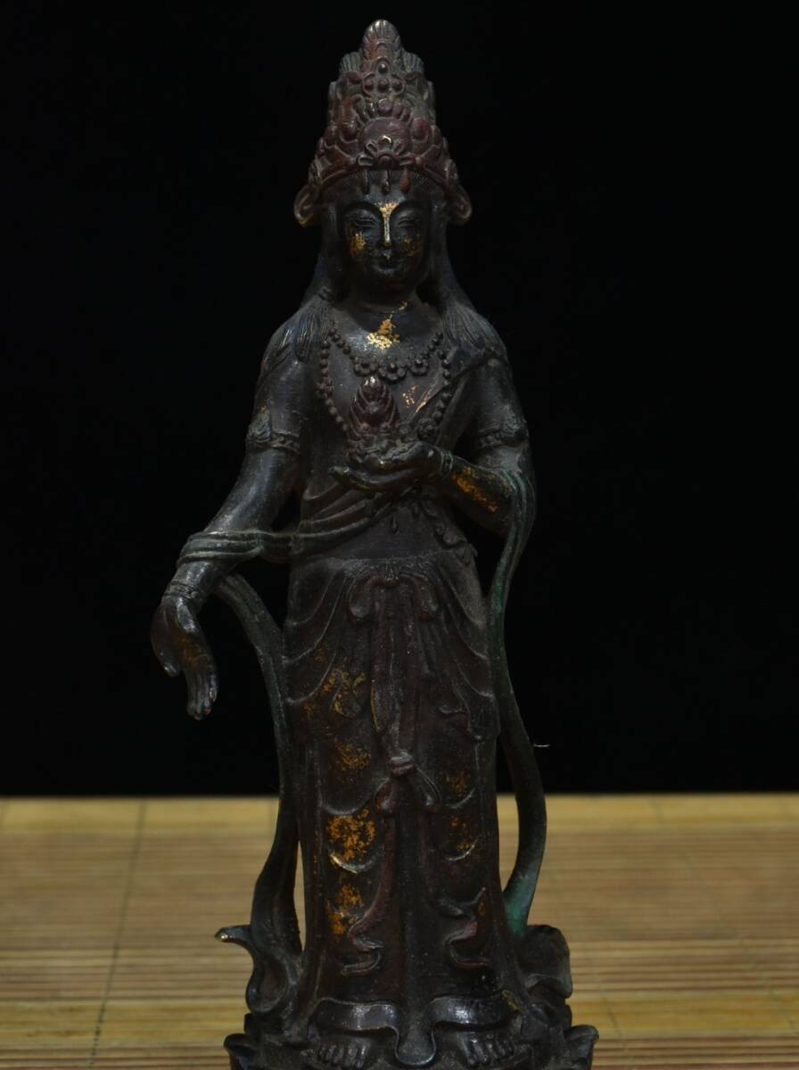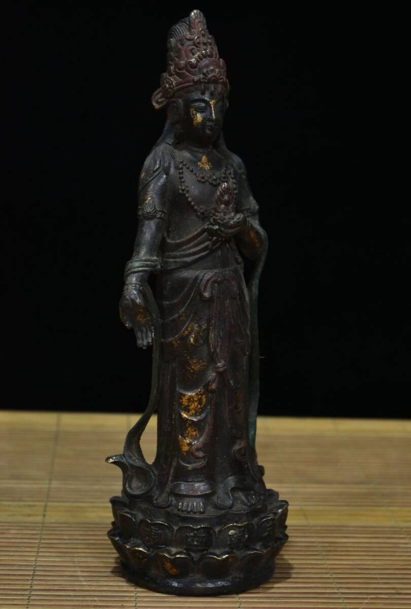 *珍品旧蔵* 清 銅拓金 站蓮花觀音 仏像 精銅鑄造 置物 銅製品 銅器 極細工 唐物 中国古玩 骨董品 古美味 H45