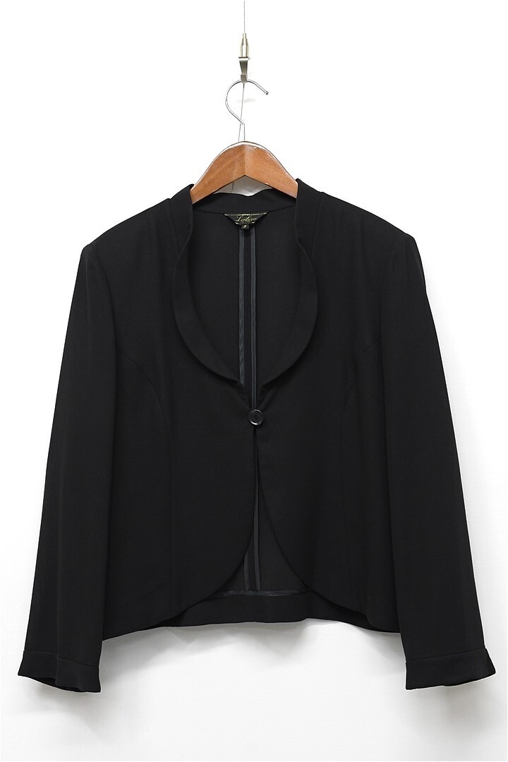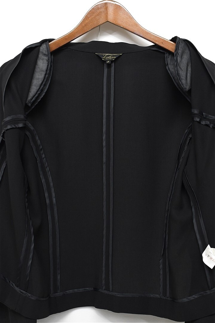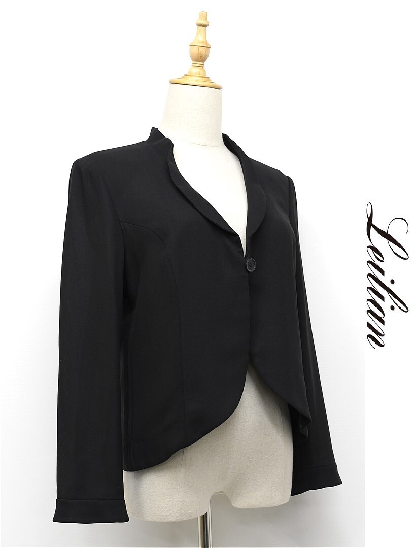 U278/美品 Leilian ジャケット 1つボタン 薄手 羽織 ゆったり 9 M 黒 春夏 日本製