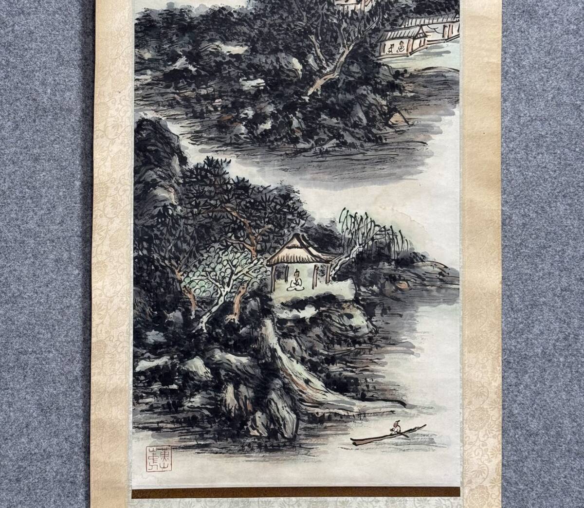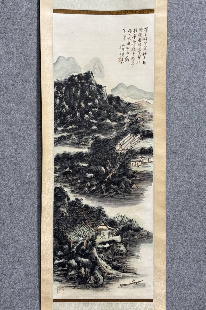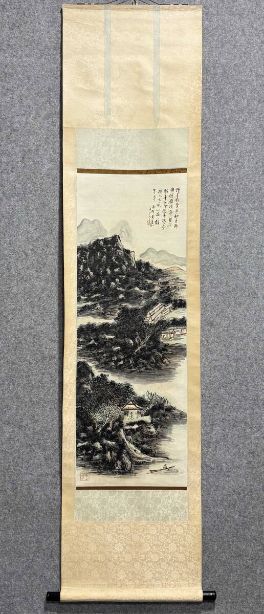 『三希堂』 中国画 古美術 [黄賓虹山水図] 掛け軸 真筆逸品 肉筆保証 中心尺寸101X36cm ABC437