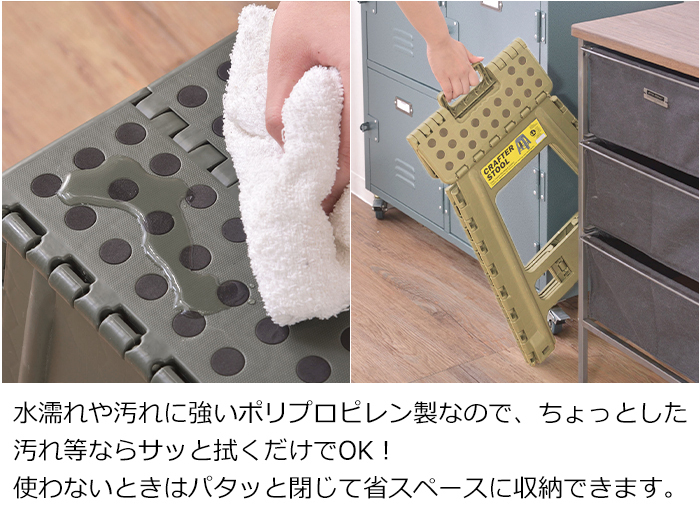 座面中央部分の取っ手を持ち上げるだけでパタっと閉じるので、持ち運びも簡単。