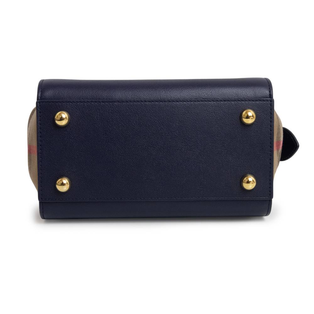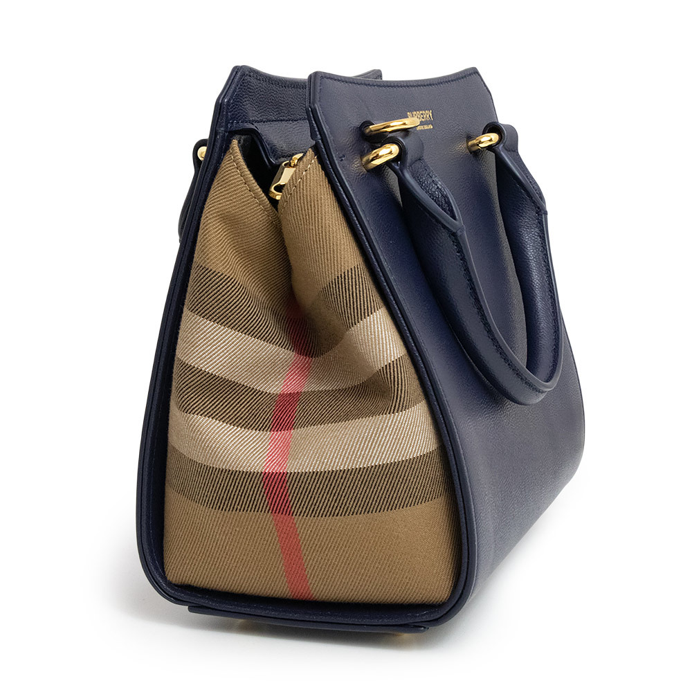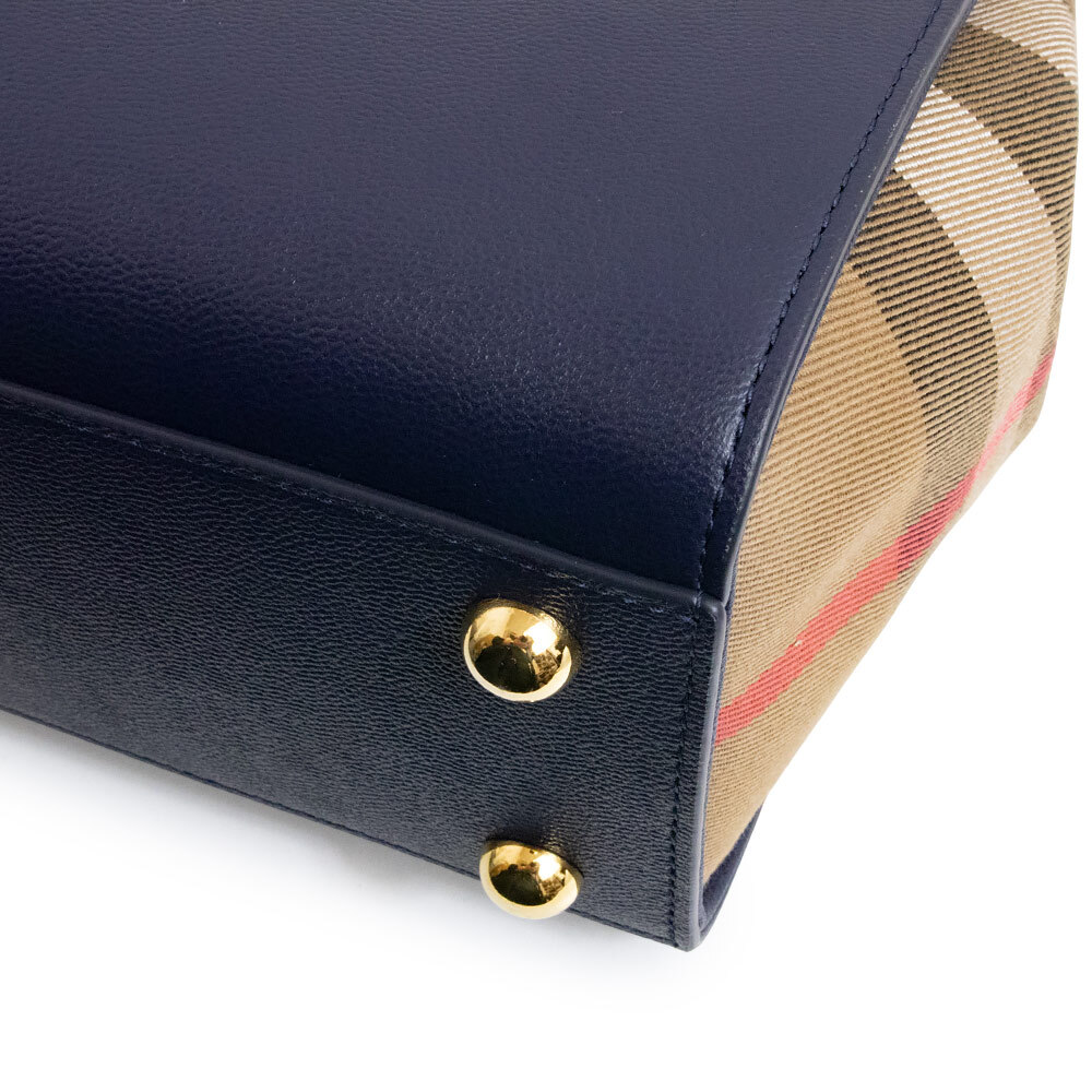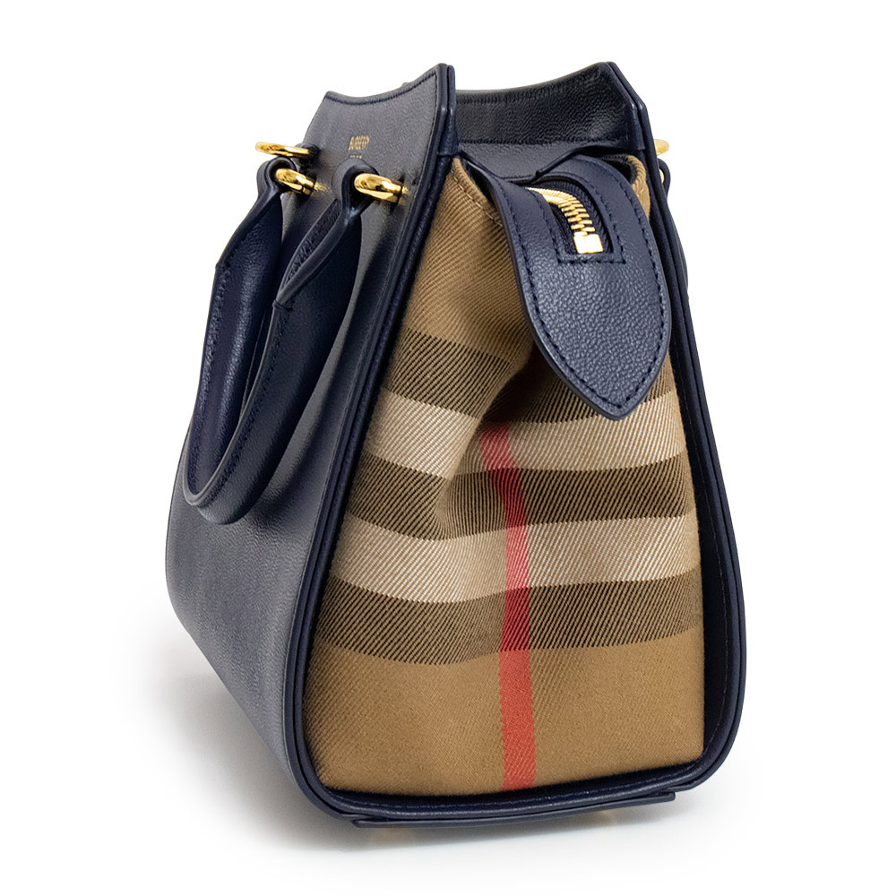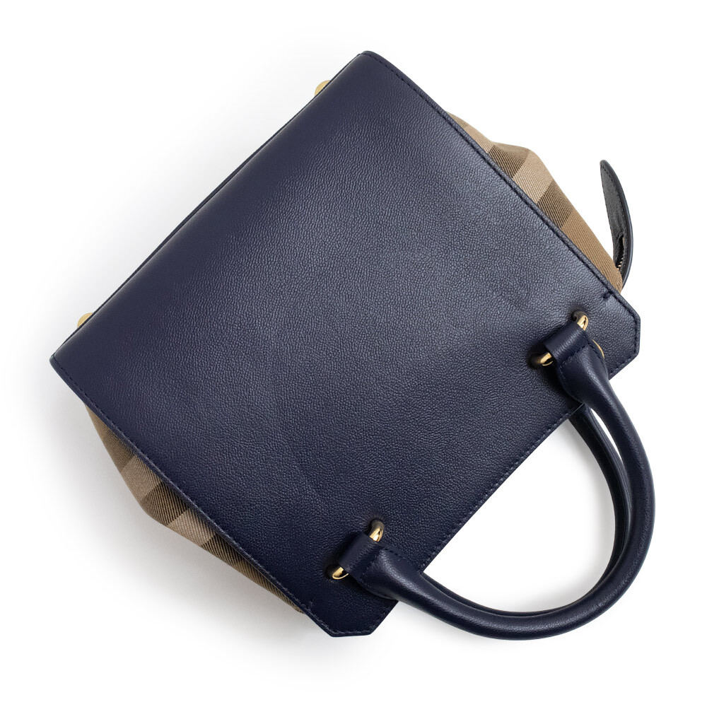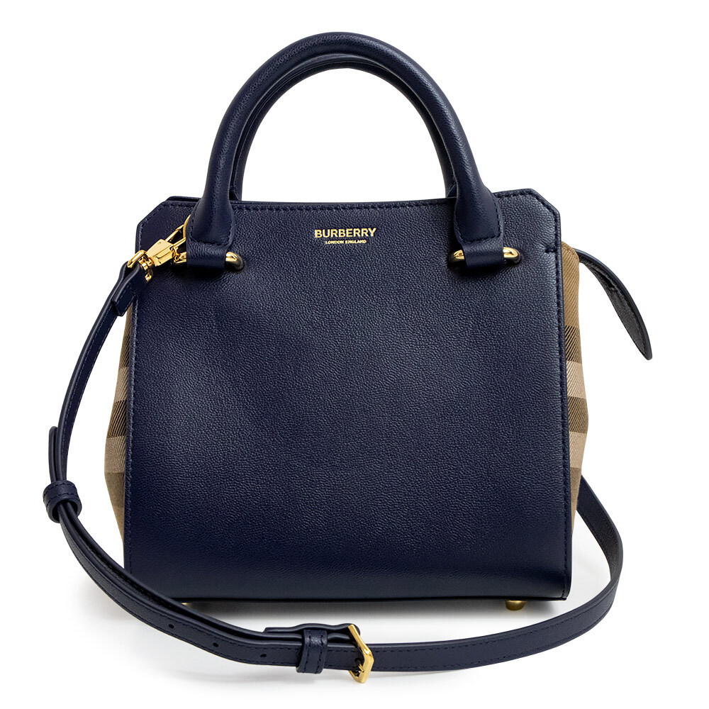 (未使用 展示品)バーバリー BURBERRY ミニ バンウェル チェック ショルダー ハンドバッグ キャンバス レザー ネイビー ブラウン 8084488