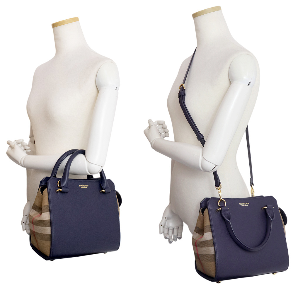 バーバリーチェックとレザーのデザインが上品なバッグです。取り外し可能なショルダーストラップ付きで、コーディネートや場所を選ばず様々なシーンで活躍すること間違いなしのお勧めアイテムです。